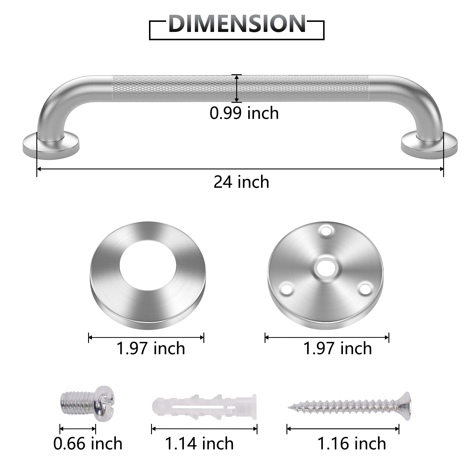 NON-SLIP AND RELIABLE: The bathroom grab bars considering that the smooth surface of stainless steel is not conducive to power assist, unique non-slip surface with a knurled surface, the anti-slip function works well even with wet hands or in a wet bathroom.