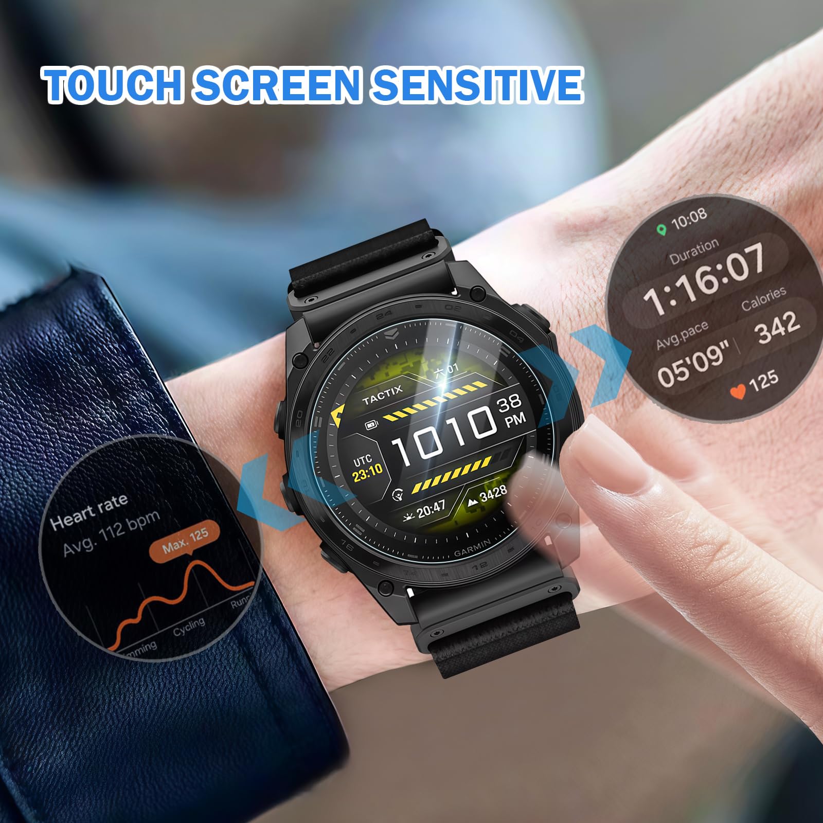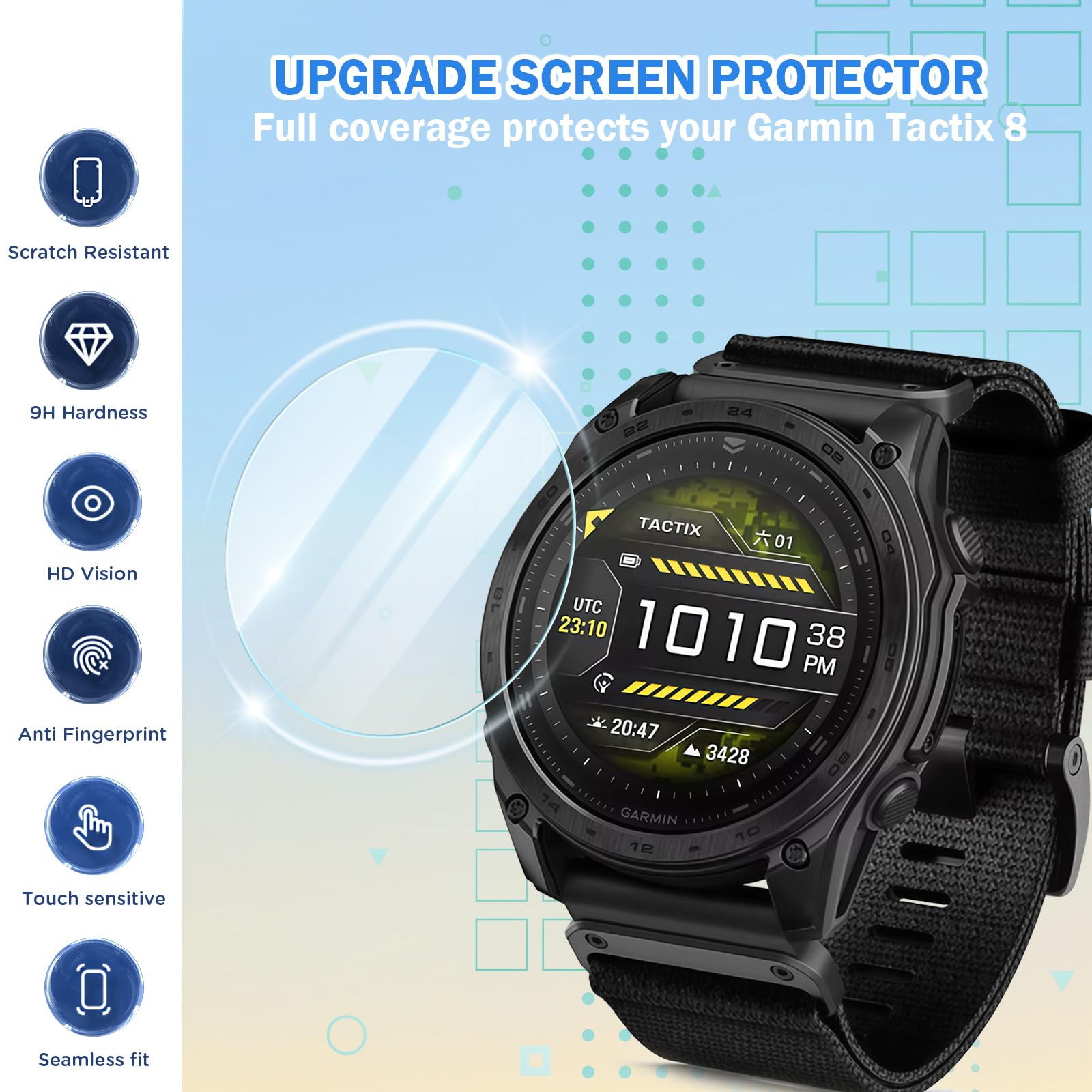 [Superior protection] Our Tactix 8 screen protector is made of 9H tempered glass. It can effectively resist scratches and protect your watch screen. And arc edge adopts a 2.5D design with a more natural edge transition, not easy to break