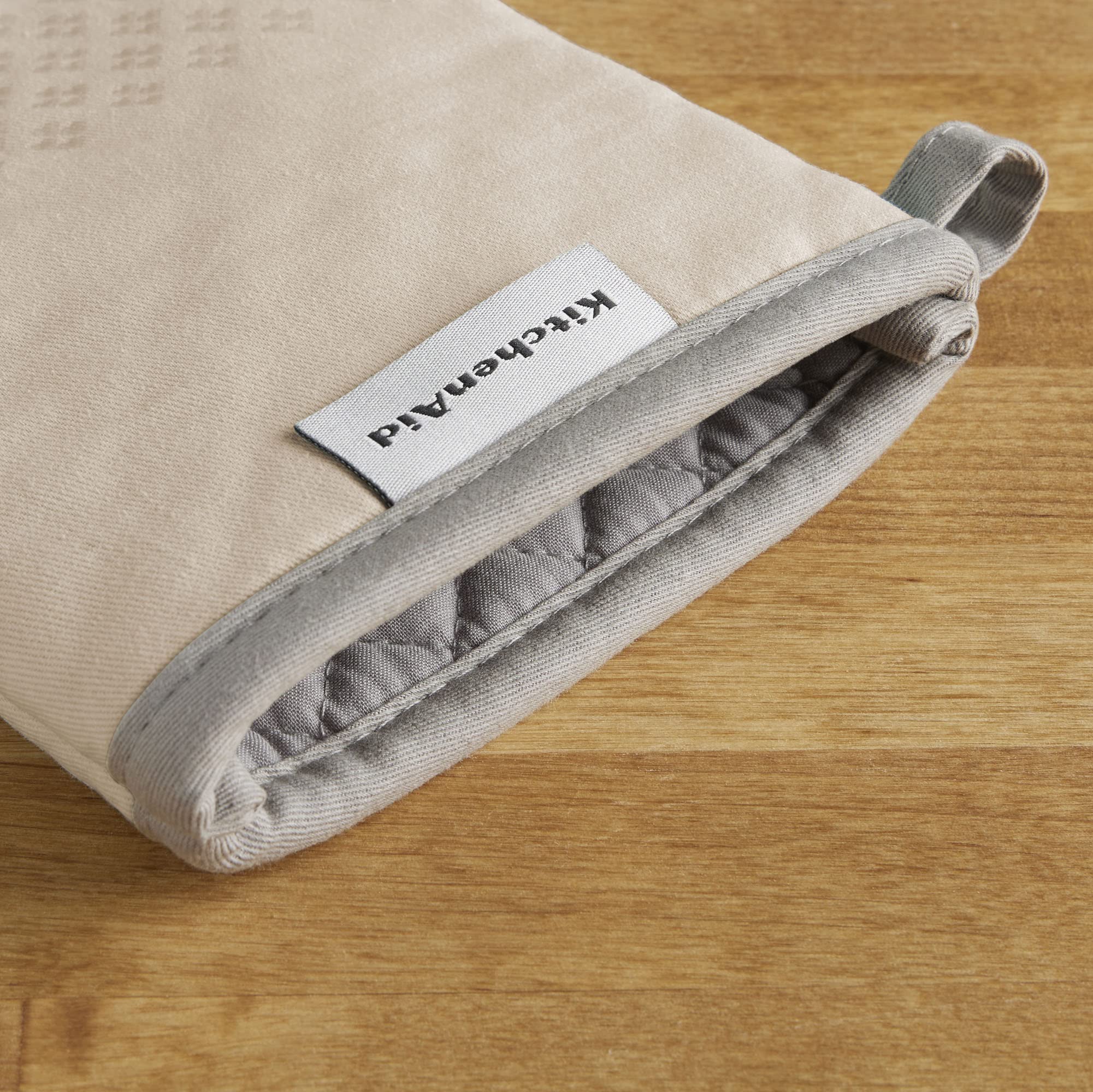 Shield your hands from the heat with the Kitchen Aid Asteroid Oven Mitt 2 Pack. These oven mitts each measure 7 inches wide by 12. 5 inches long for a spacious fit, and they are heat resistant to protect your hands while handling hot pots, pans, and dishes. The heavy-duty, 100 percent cotton fabric on the outside as well as the cotton lining offers comfort, flexibility, and insulation. Textured, silicone print grips on the mitts are heat resistant and also ensure a more firm and secure grip when handling dishes and cookware. The matching oven mitts feature a convenient hanging loop to easily display or store them when not in use. They are easy to clean and machine washable for easy care. Use your Kitchen Aid Asteroid Oven Mitt 2 Pack along with coordinating kitchen accessories from Kitchen Aid including potholders and kitchen towels for a complete set of Kitchen Aid kitchen essentials! Each item is sold separately. Perfect for cooking and baking. Give the Kitchen Aid Asteroid Oven Mitts as a gift to a friend or family housewarming, on holidays or any special occasion. Made in China.