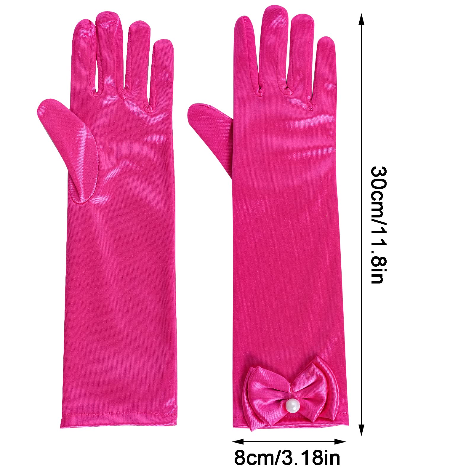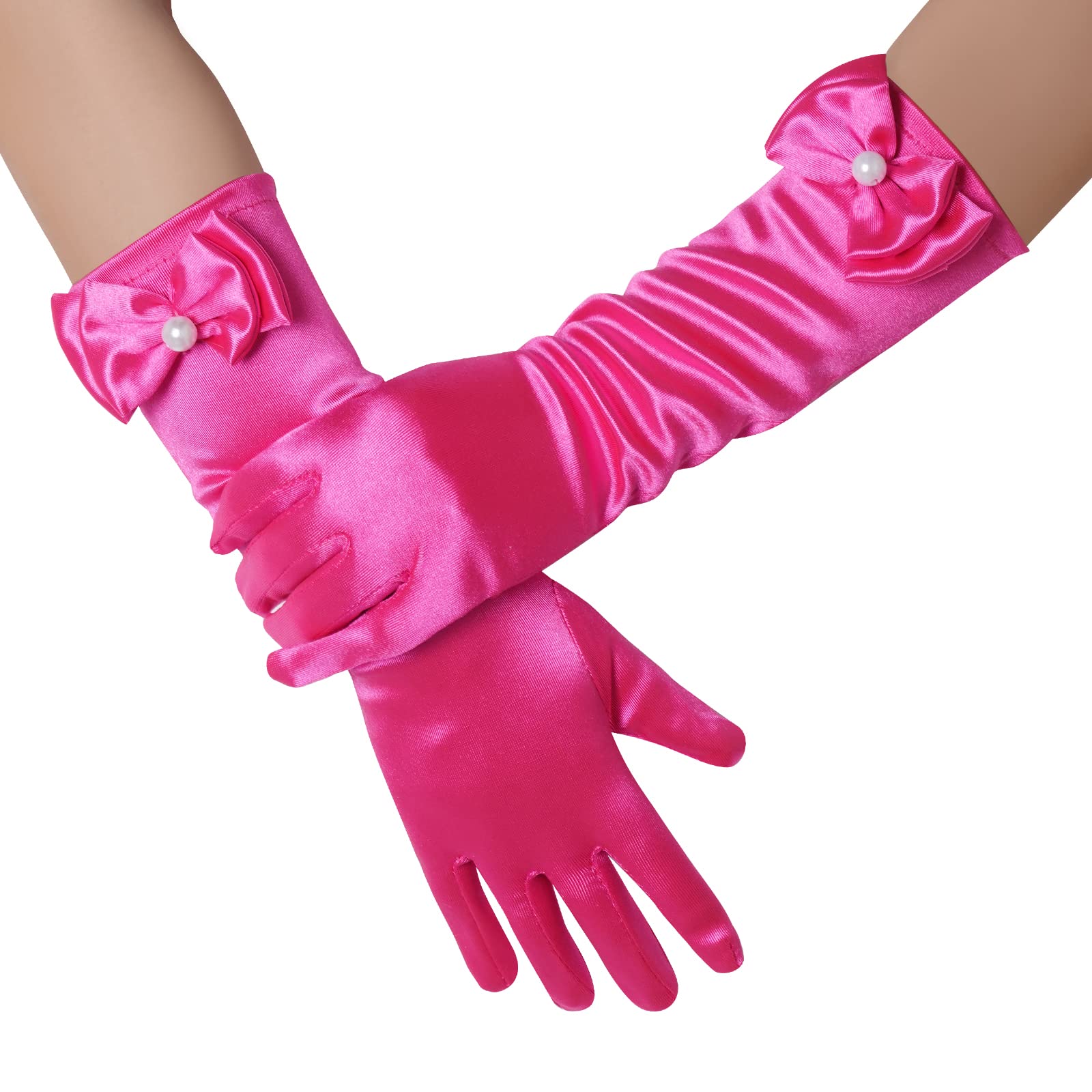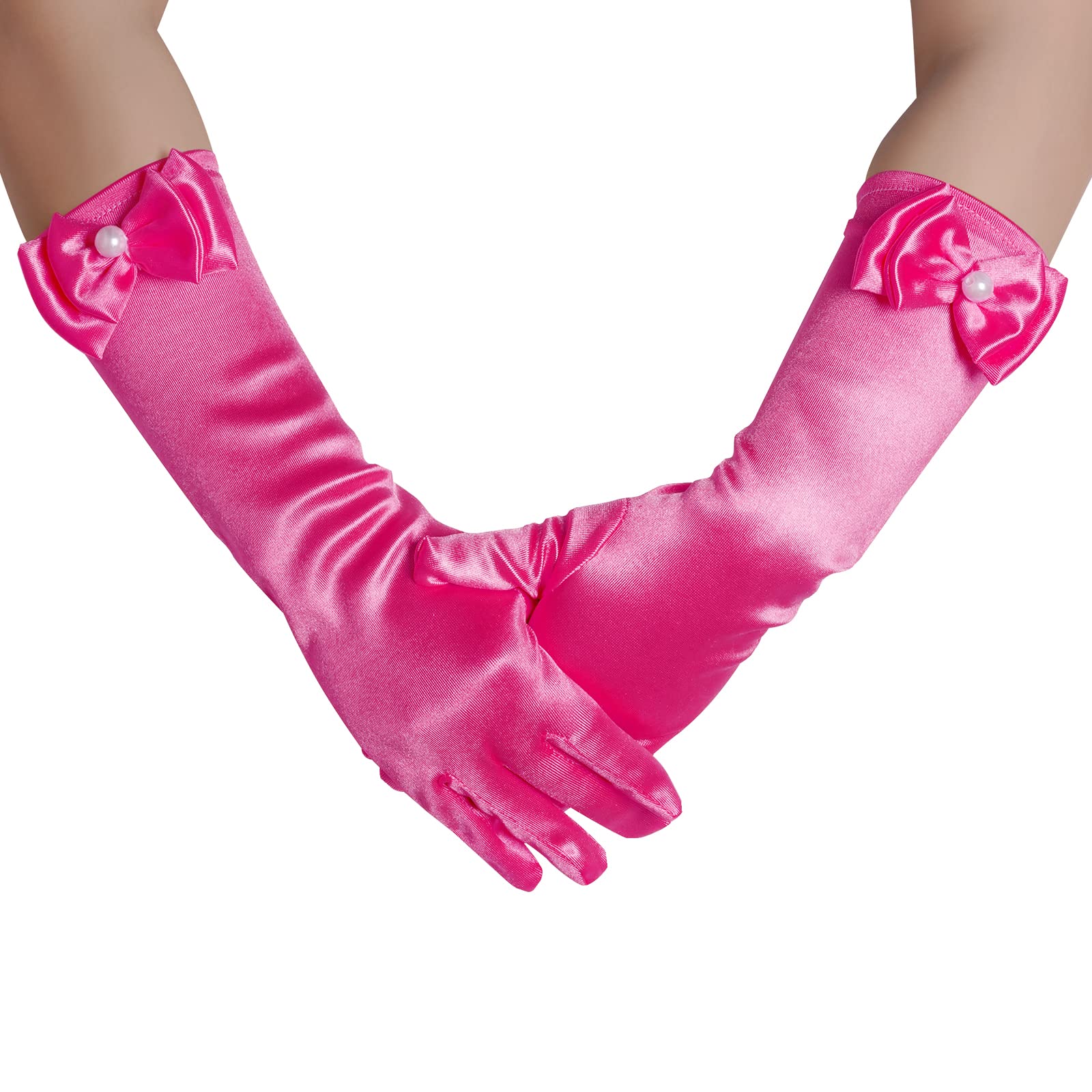 Description Features: Stretchy bow-knot girls' gloves fit children age 4 years up to 8 years old. The quality fabric is stretchable to fit a variety of sizes Easy to clean and maintain Lovely and classic gloves is a great girls accessories Suitable for little girls in Parties, Wedding, Formals Events, Performance or Costumes Package Included: 1 pair of girls gloves