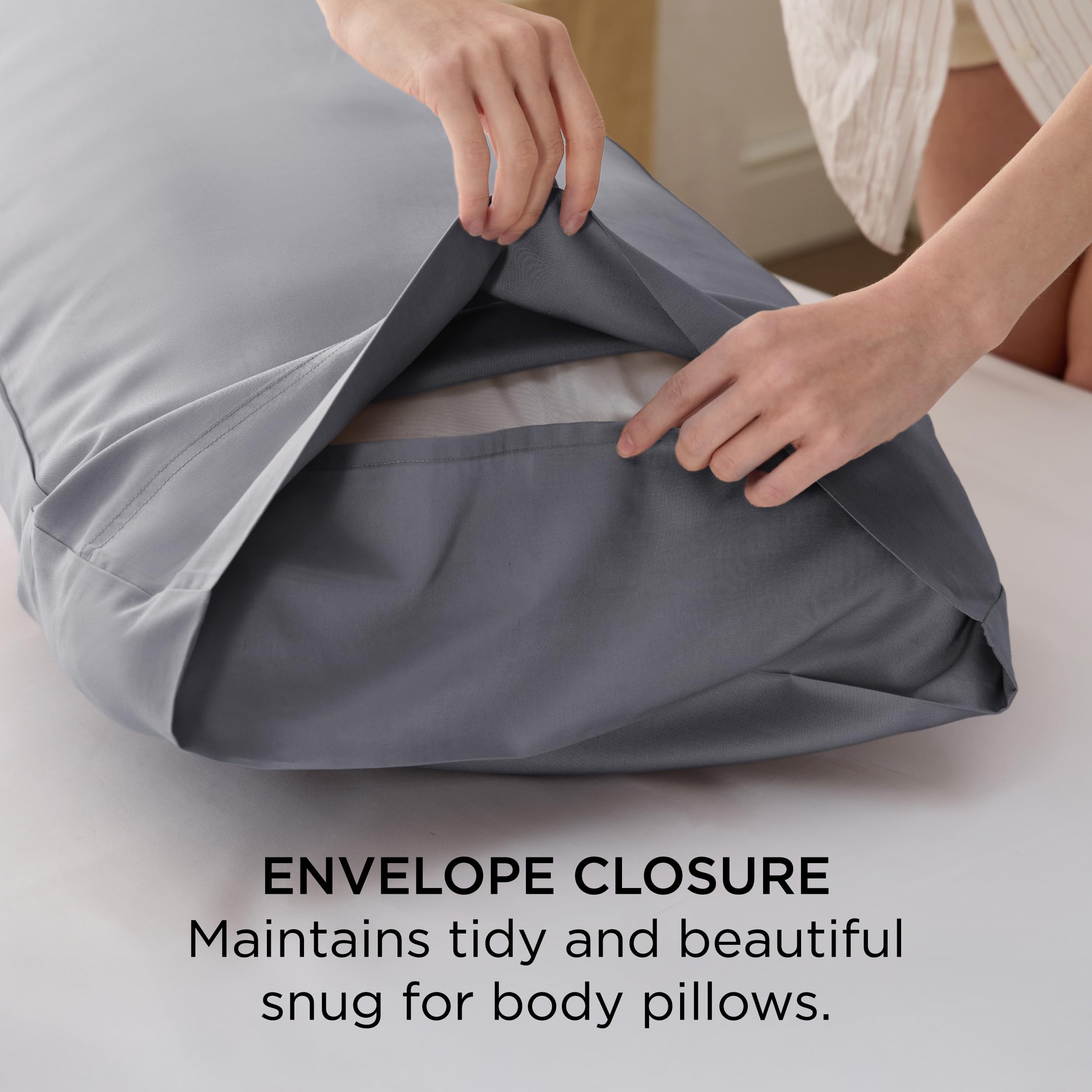 Easy Care: This single body pillowcase (20" x 54") has an envelope closure to keep the pillow secure and hair snag-free. Machine wash on cold with like colors. Use only non-chlorine bleach if necessary, tumble dry low and cool iron if needed. Please take the product out of the dryer immediately after drying to reduce wrinkles