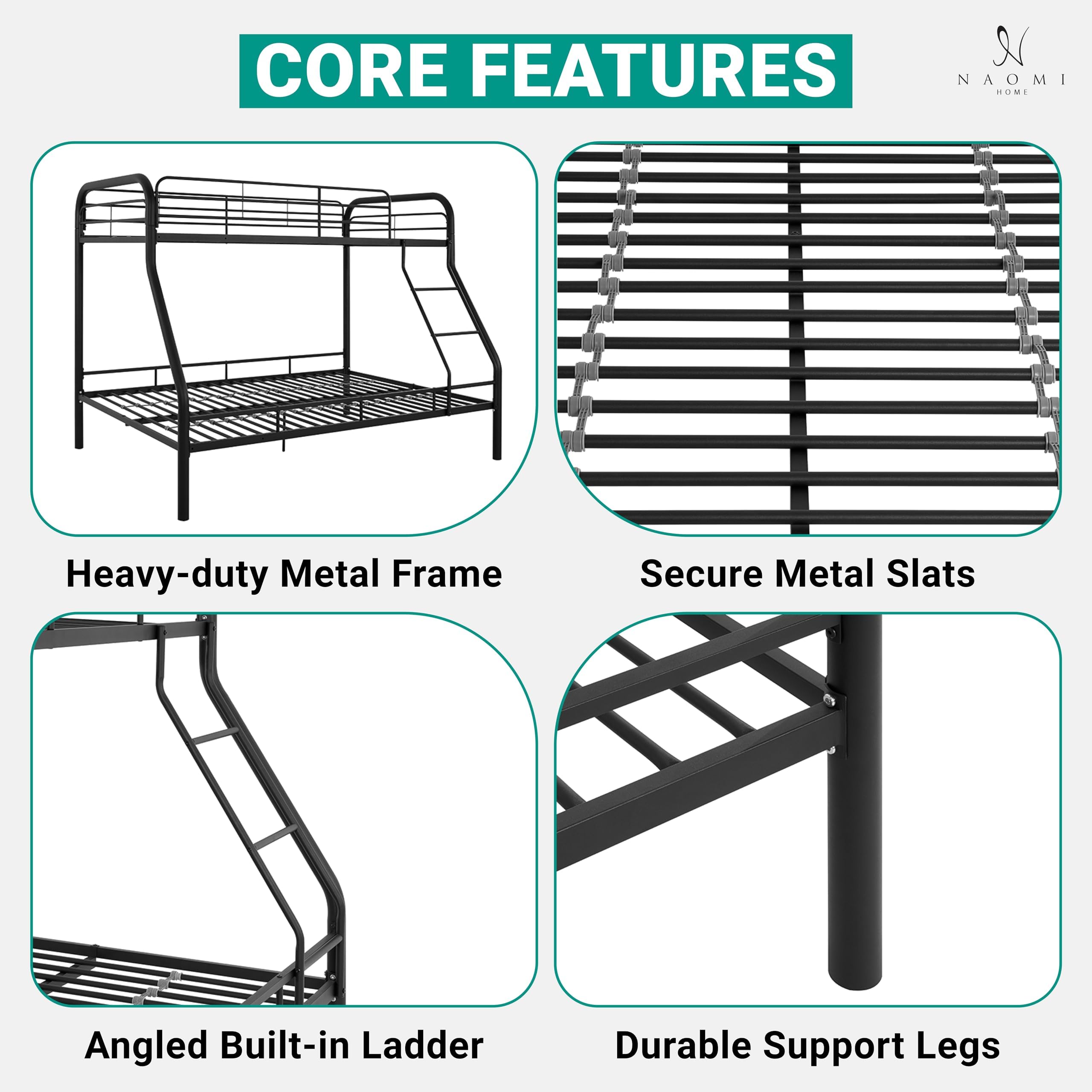 HEAVY-DUTY DURABILITY THAT LASTS: Built with high-quality iron tubing, this bunk bed is engineered for long-term use, supporting up to 800 lbs total weight. Its sturdy construction resists wear and tear, making it ideal for active kids and teens. Unlike standard bunk beds, this Naomi Home design ensures reliable performance, providing excellent value for budget-conscious families seeking a lasting investment.