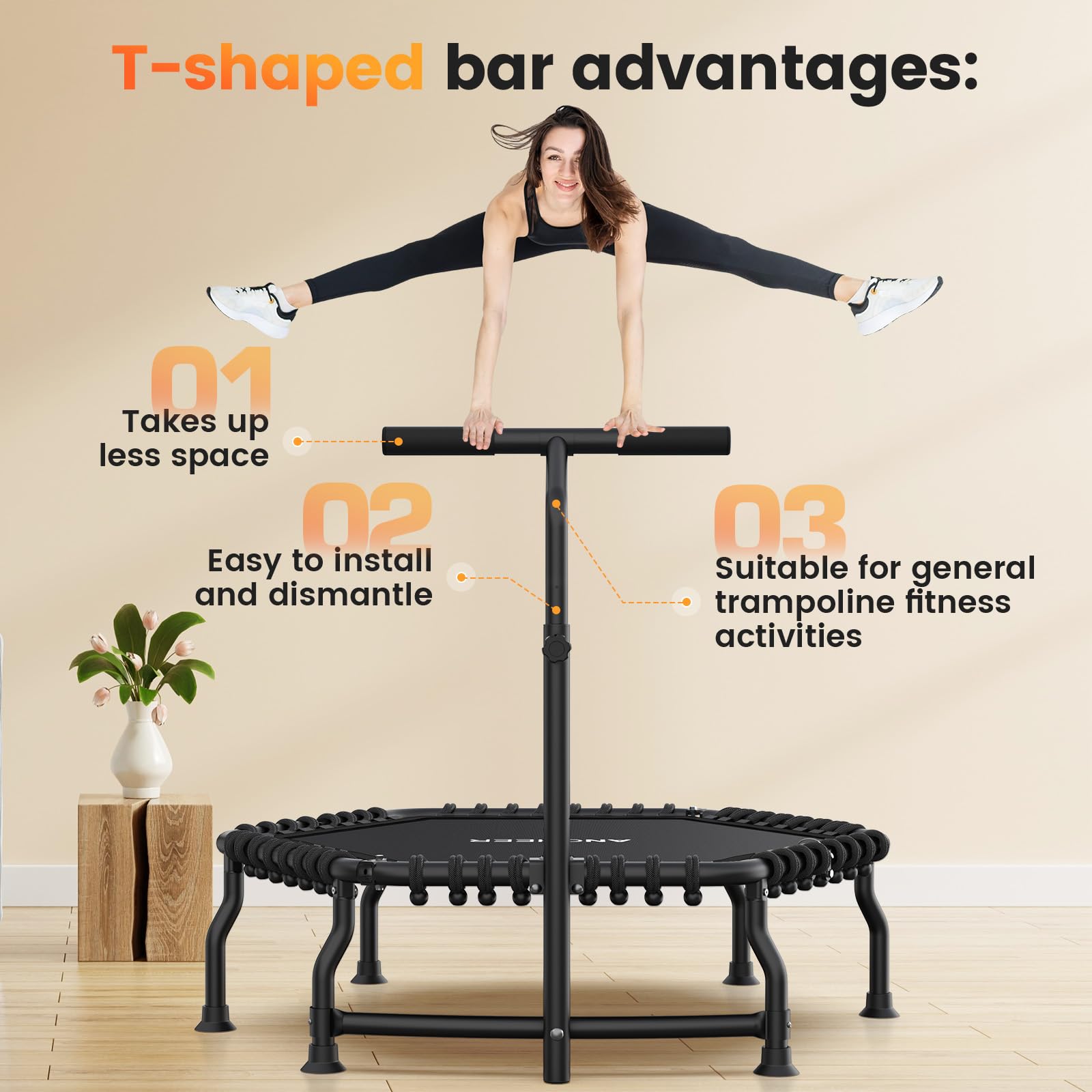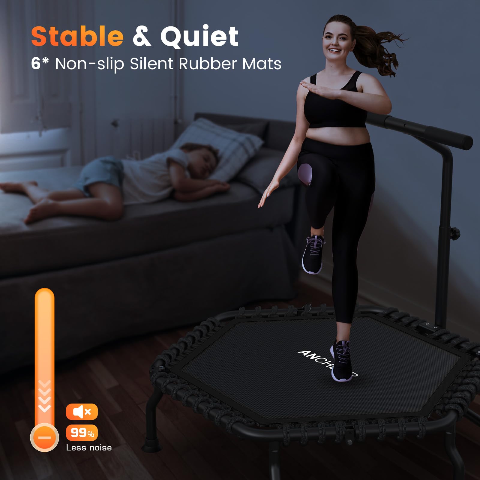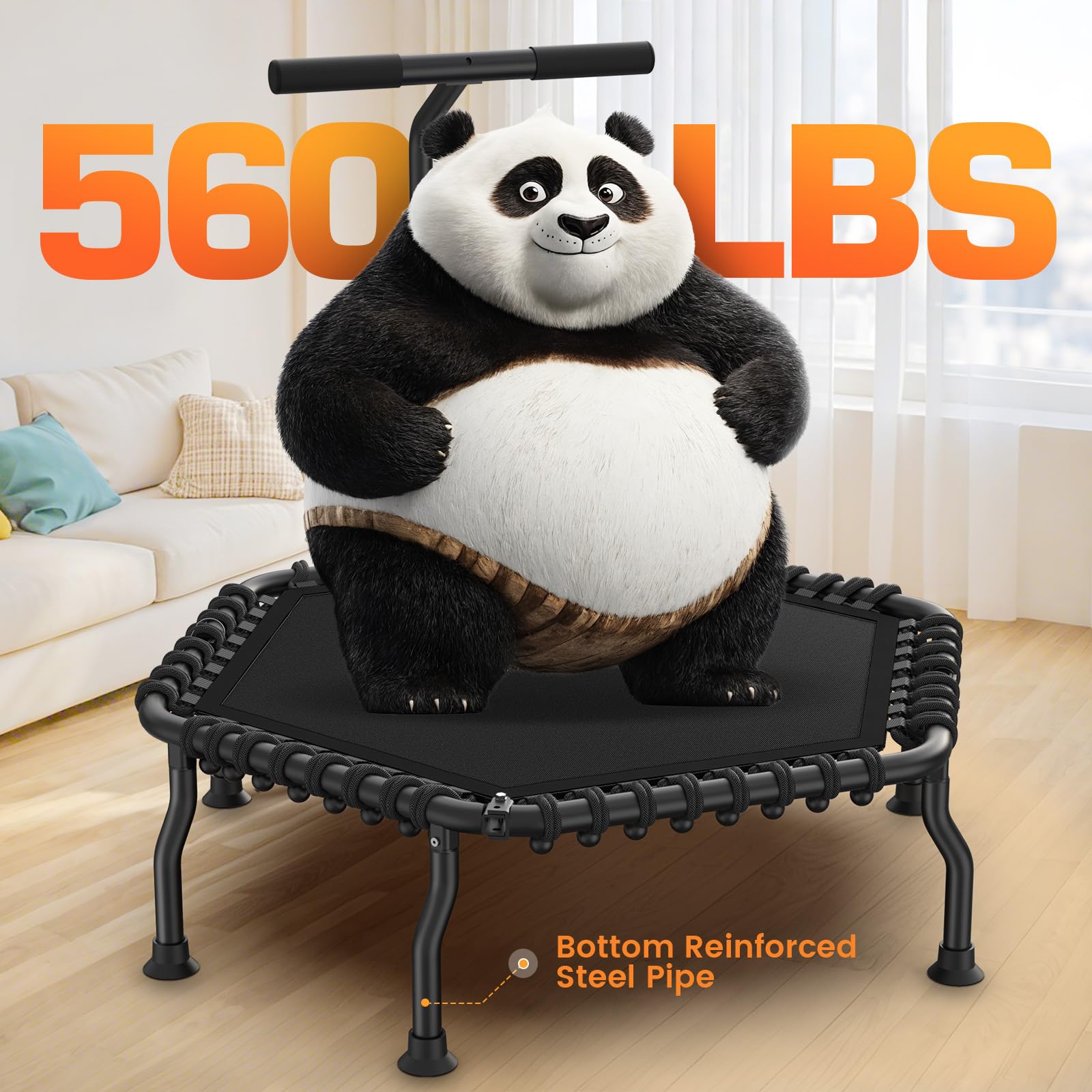 【High-Capacity & Multi-User Safe】550 lbs weight capacity & 50" jumping mat support better workouts, reinforced with 6-leg steel frame and non-slip rubber feet for anti-tip stability.