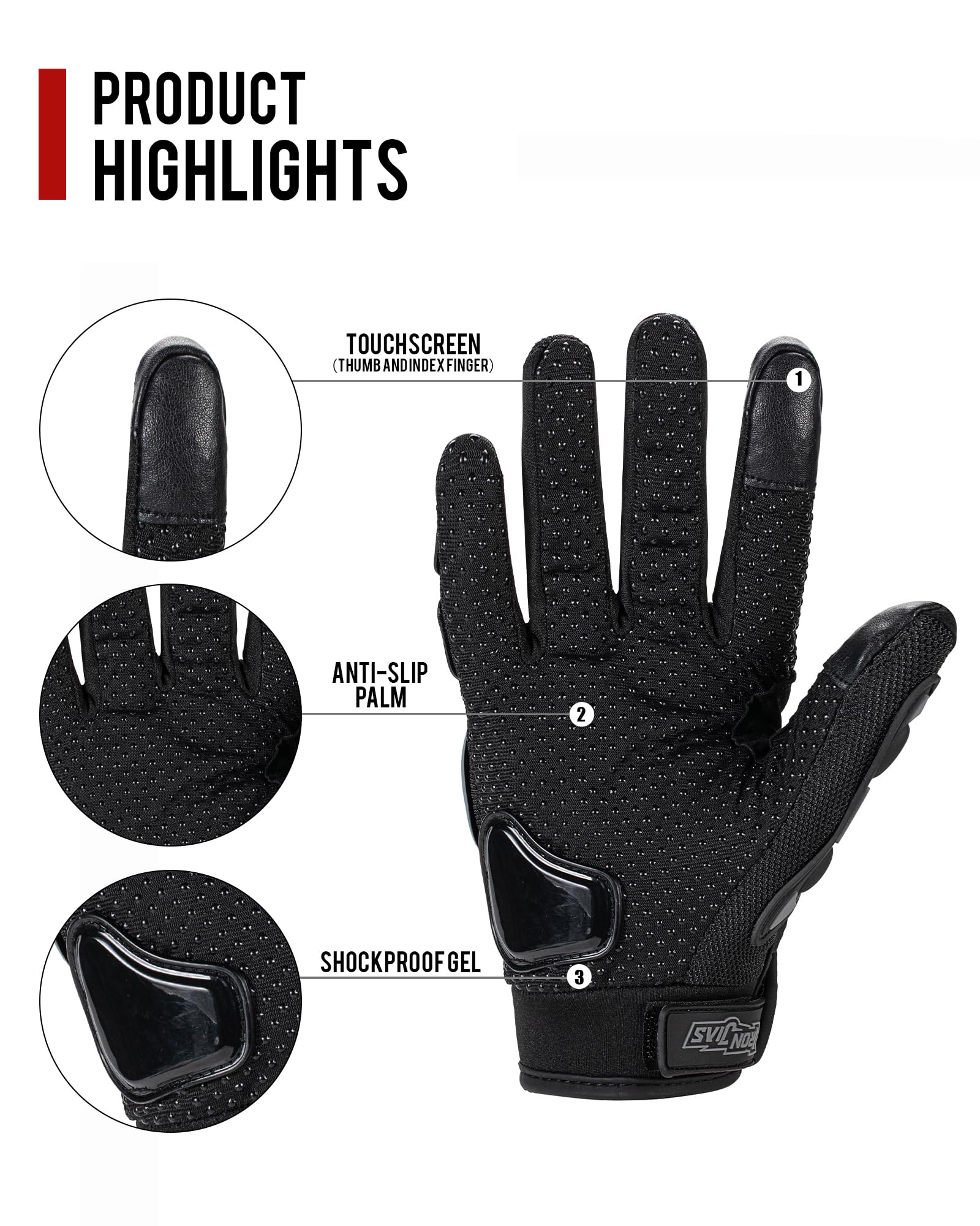 Suede protection between the thumb and the index finger , reduces the wear between the gloves and motorcycle ,also increased handle grip .