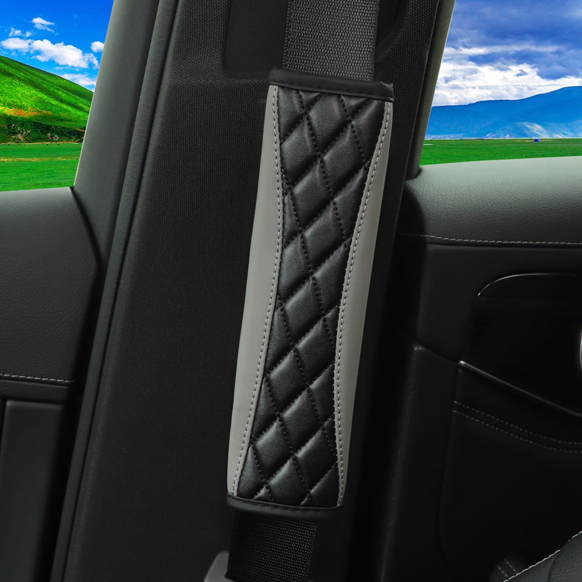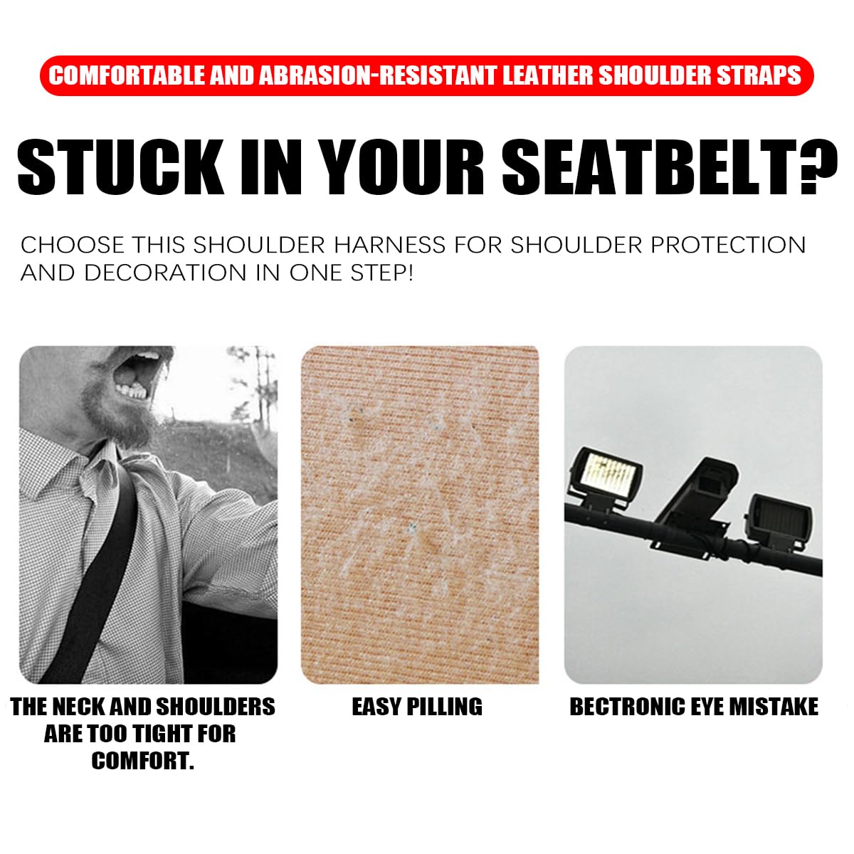 【Unique Design】: The car seatbelt shoulder cover is designed with a dried bean block shape and comes with harness, which is novel and unique. It is made of leather and comes in two colors, which can enhance the fashion and personalization of the interior decoration and satisfy the owner's pursuit of the aesthetics of the vehicle's interior.