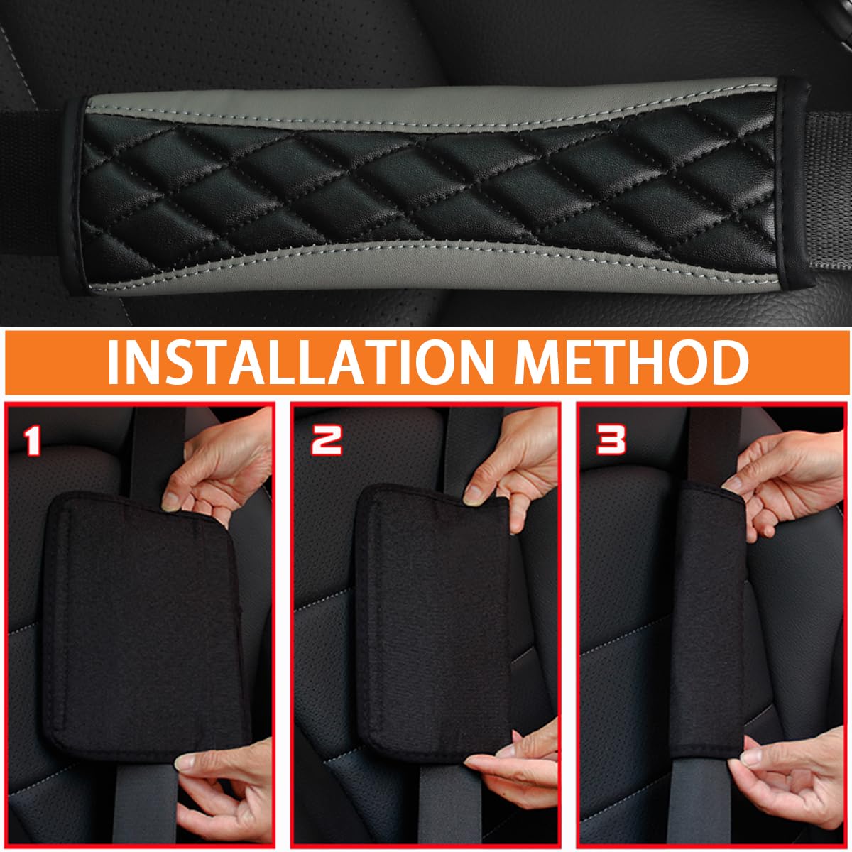 【High Quality Material】: The car seatbelt shoulder pads are made of high quality leather and foam, which will give you a good driving experience. The leather makes this shoulder sleeve comfortable and soft, while the 0.16-inch thickness sponge pad can disperse the direct impact of the seat belt on your shoulder and provide some shock absorption and cushioning, making your trip more enjoyable.