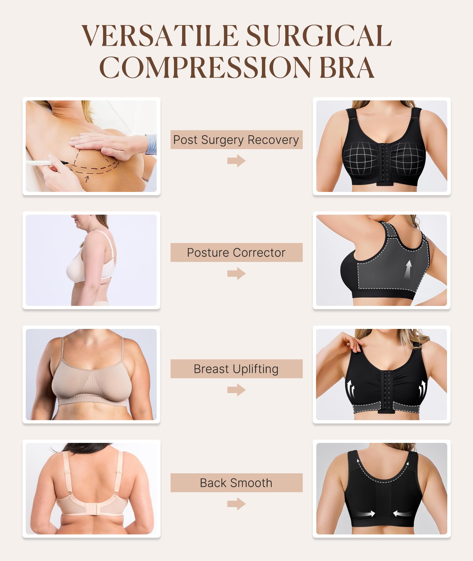 Versatile Post Surgery Use: Compression bras for women post surgery front closure is suitable for recovery after breast augmentation, reduction, mastectomy, or reconstruction. The functional compression design, paired with full coverage support, offers gentle and stable support throughout the healing process. It is recommended to wear it consistently from the 2nd to the 27th week after surgery, surgical.