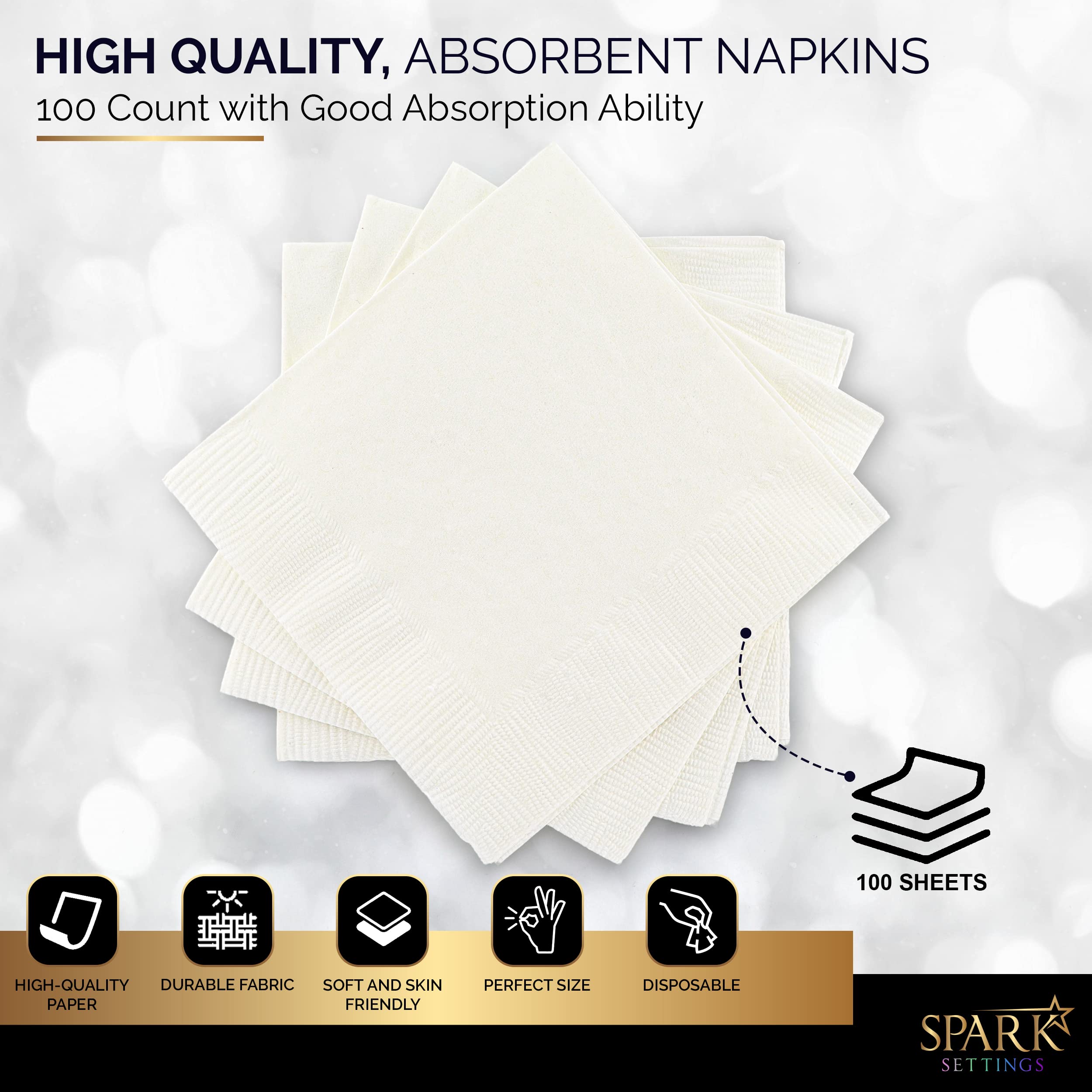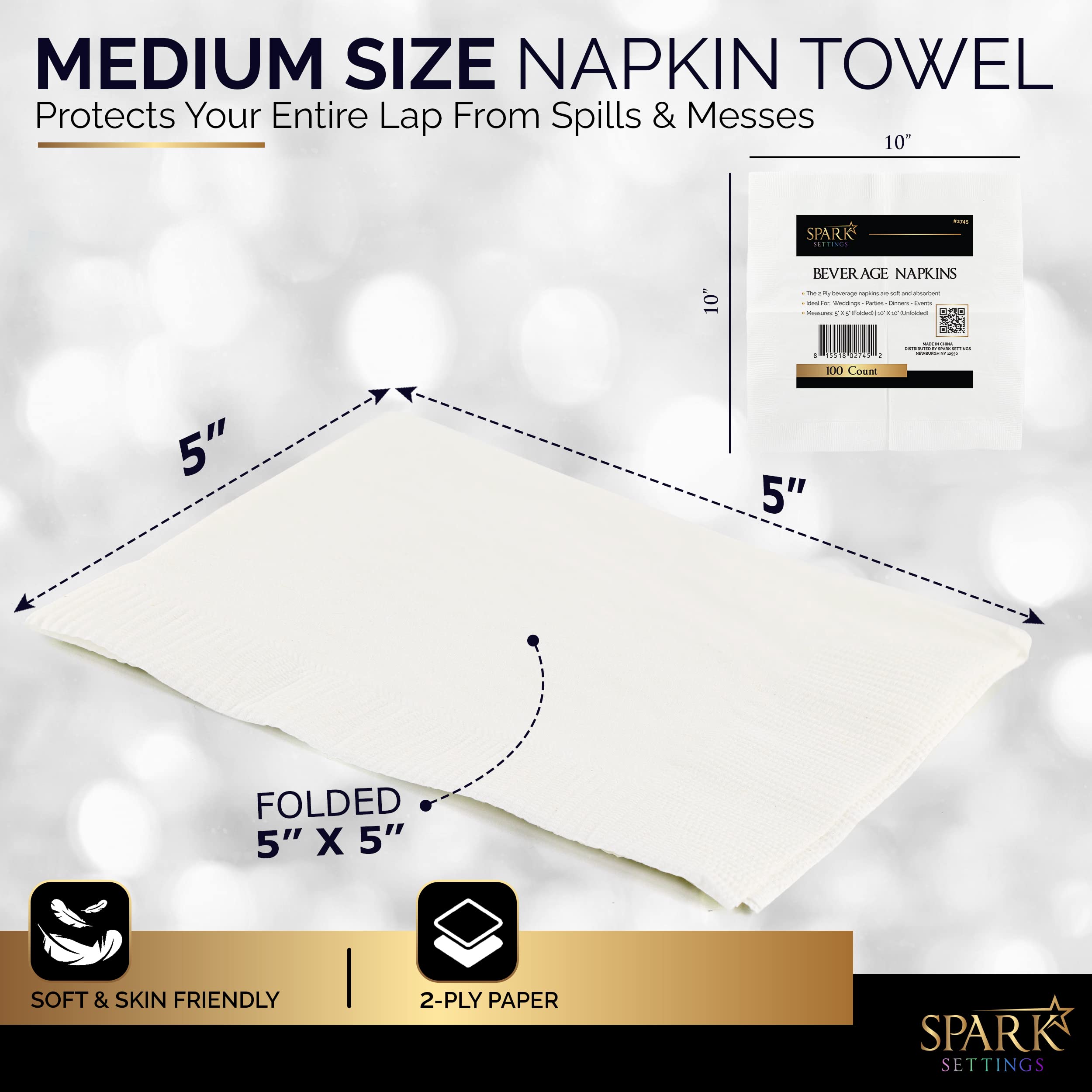 ✓SPECS - Paper cocktail napkins are disposable 2-ply dessert napkins. Paper napkins everyday have bright and vibrant colors black orange clear lime purple white blue green red pink gold burgundy and Silver. Lunch napkins are folded 5” x 5” and unfolded 10” x 10” comes in 100 pack and serve with any beverage.