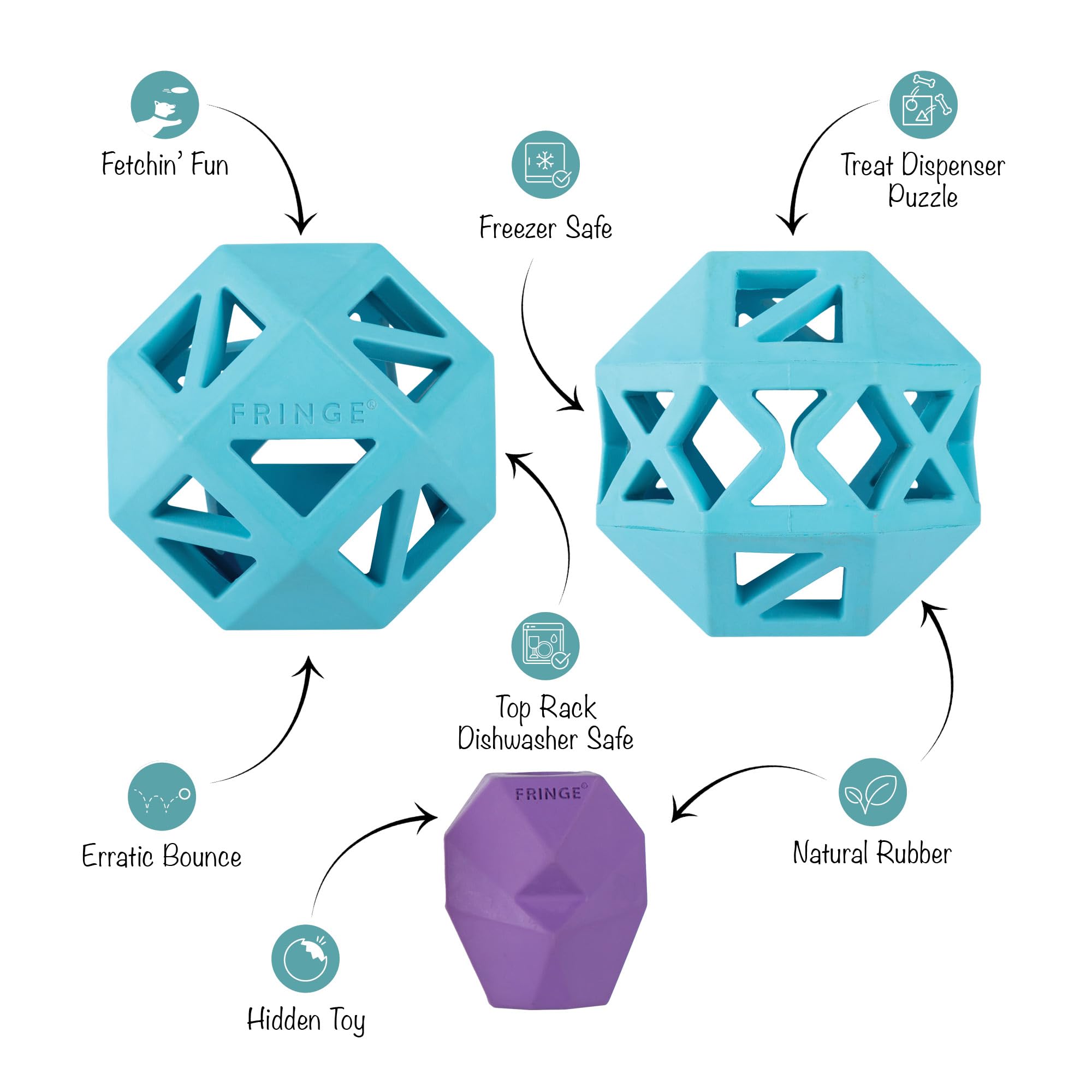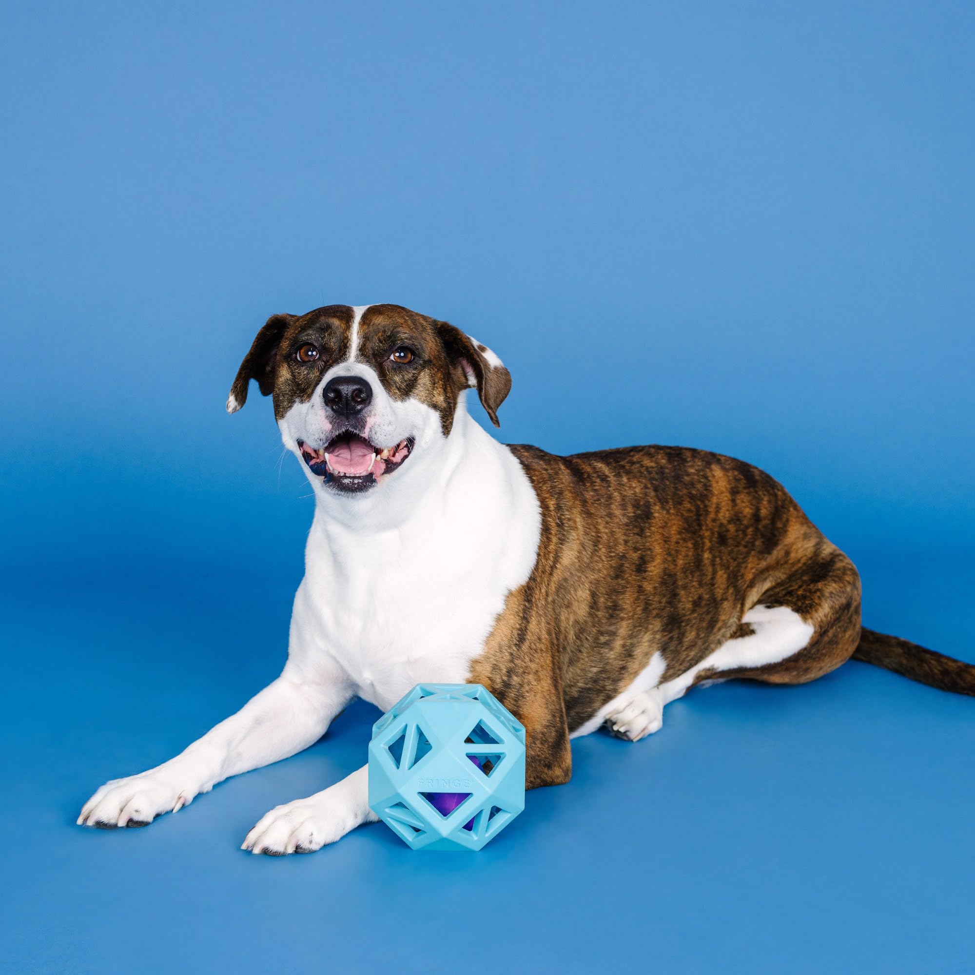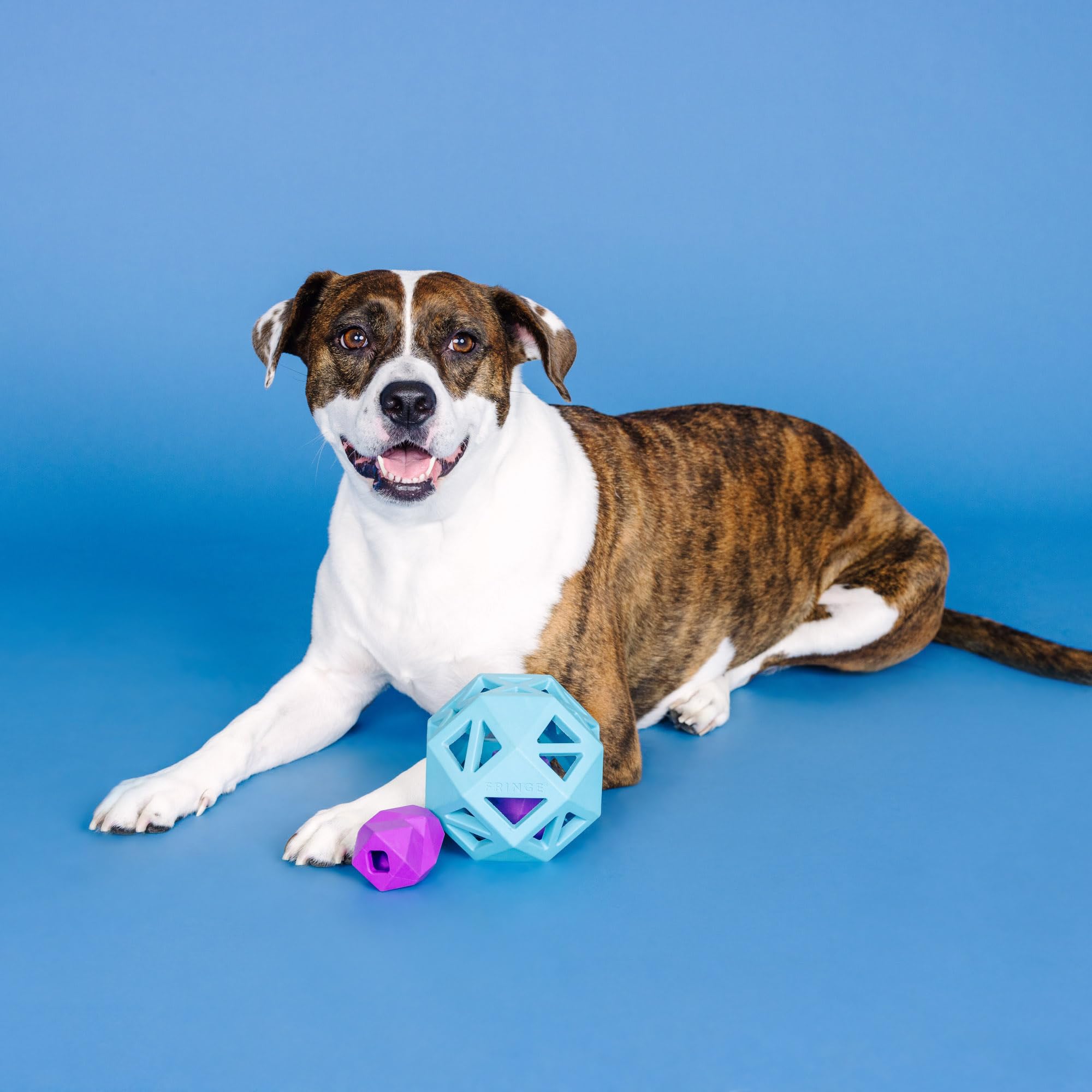 Ready to join the Dura Club? PetShop by Fringe Studio's "Sweet on the Inside" blue rubber dog toy is for pups that love to work for their treats, chew, and play lots of fetch. As a 2-in-1 treat dispenser puzzle with an erratic bounce and made with natural rubber, this toy was created for long-lasting interactive play. Simply fill the inner treat dispenser puzzle or outer treat dispenser with treats, then toss it for some fetchin' fun to keep your pup busy trying to get them out. Great for all-sized dogs and strong chewers.