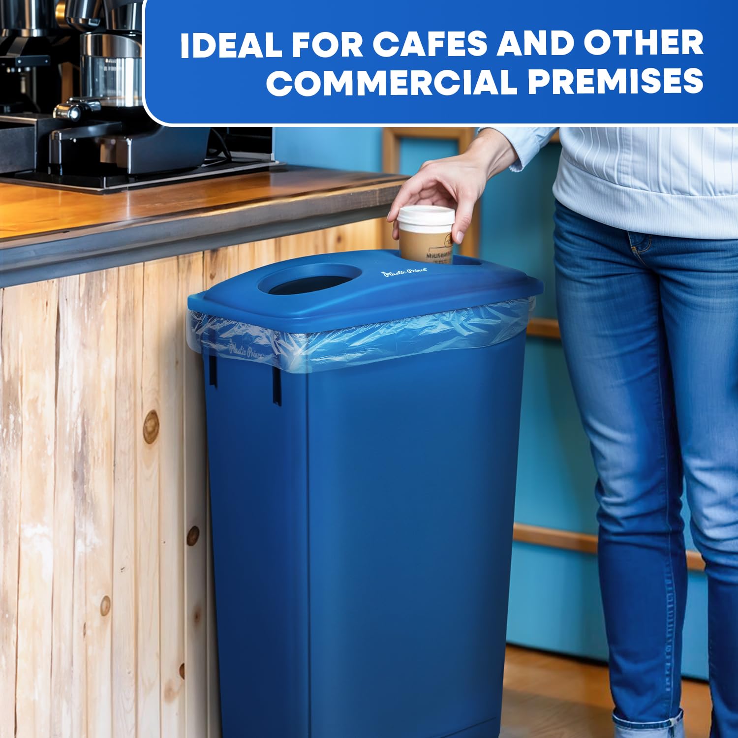 Recycling Lid with Slots: Equipped with a specially designed lid featuring dedicated slots for bottles and cans, this trash can makes sorting recyclables effortless while promoting eco-friendly practices. Perfect for use as a recycle bin for cans and bottles.