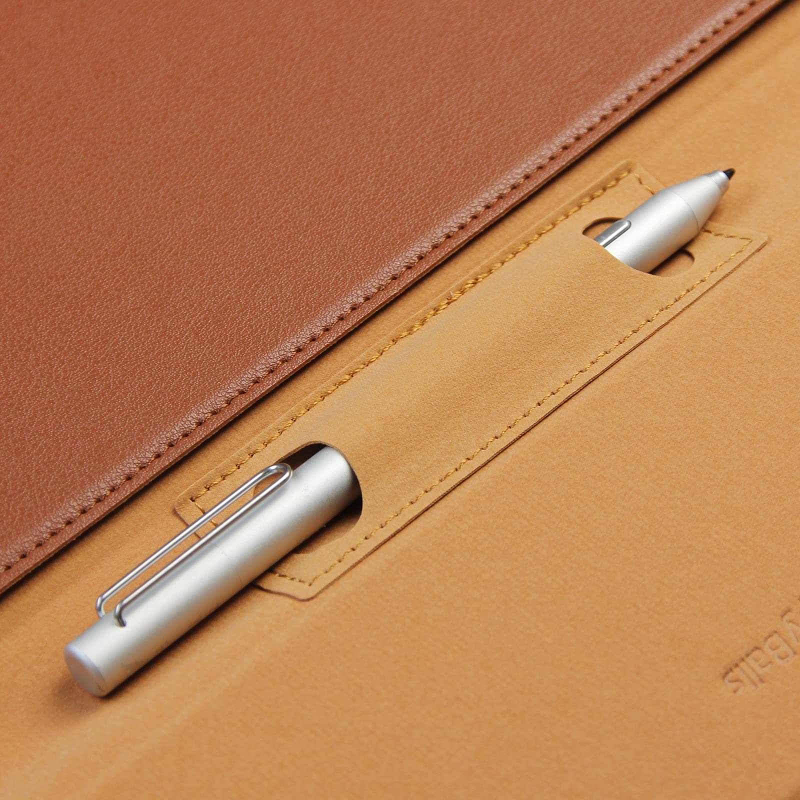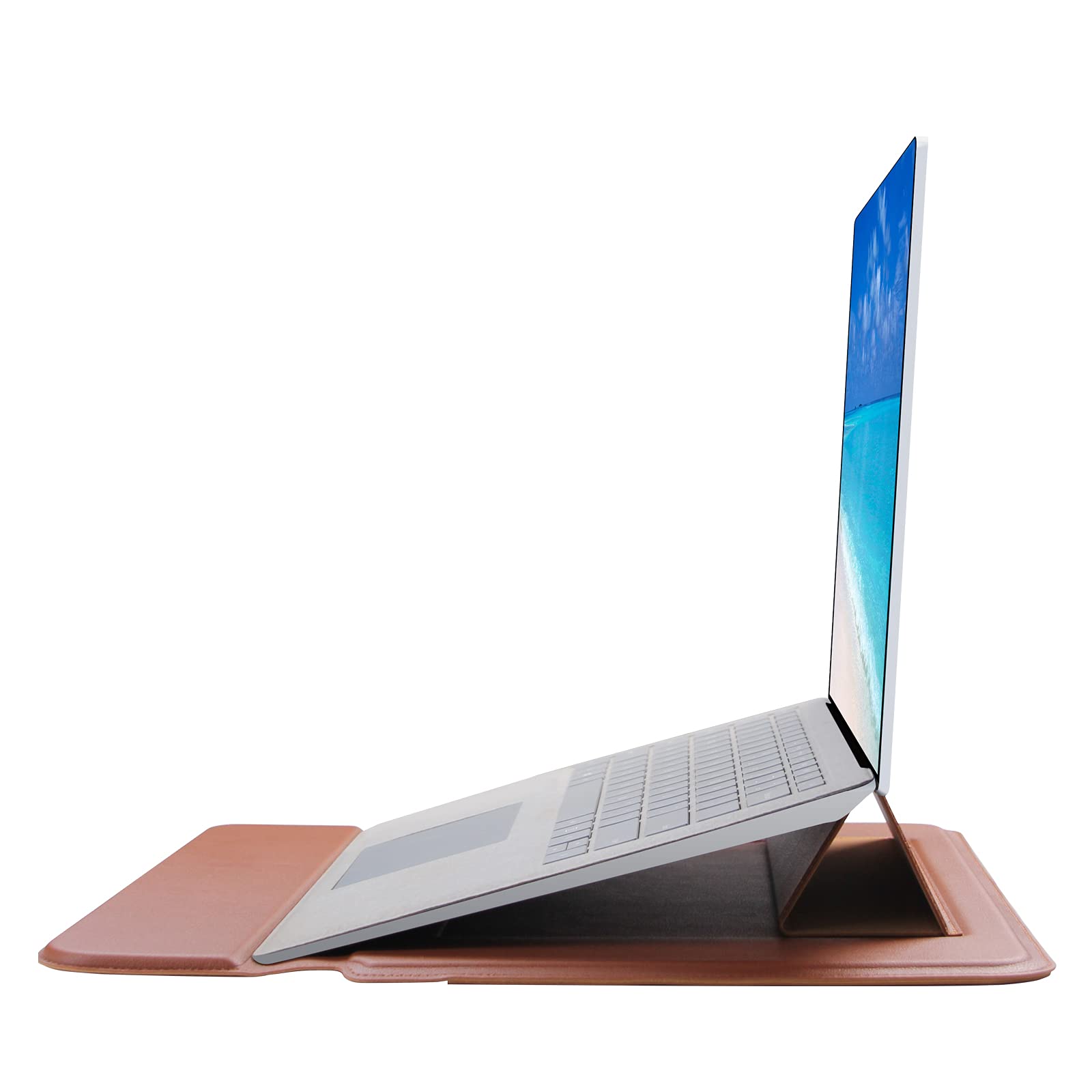 Note: ★This laptop case is slim, if your laptop with some thick and hard shell case, it's won't fit. ★Please confirm with us if you are not sure whether this case is suitable for your laptop/tablet. The 14" laptop sleeve with laptop stand on the back, and a pen holder inside, and the cover can be used as wrist rest pad. It's convenient for office and travel. Premium PU leather exterior, microfiber interior can protect your devices from dirt, scratch, dust, oil, shocks, and etc., reduce damages caused by accidentally thing. And without worrying about the devices being rubbed against or damaged by any other object within the sleeve. Being slim and lightweight, the laptop case is easily to carry or inside another bag, backpack and suitcase. External dimensions: 350*254*21mm (13.8*10*0.83inch); Internal dimensions: 330*245*19mm (13*9.6*0.75inch); Weight: 370g(0.82lb); Compatible with most 13~14 inches devices: → Microsoft Surface Laptop 13" (2025), Surface Laptop 5/4/3/2/1 13.5", Surface Book 3/2/1 13.5"; → MacBook Air 13.3" 13.6" / MacBook Pro 14.2"; → Huawei MateBook Pro X; → Dell XPS 13; → Lenovo yoga 13.3"; → most 13" 14" chromebook tablet laptop computers.