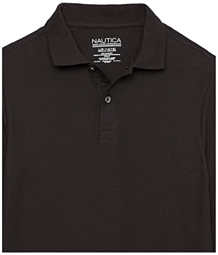 Nautica school approved knit polo features a solid and free-of-logos design, ribbed cuffs and collar, button placket, long sleeves and straight vented hems for an "un-tucked" style