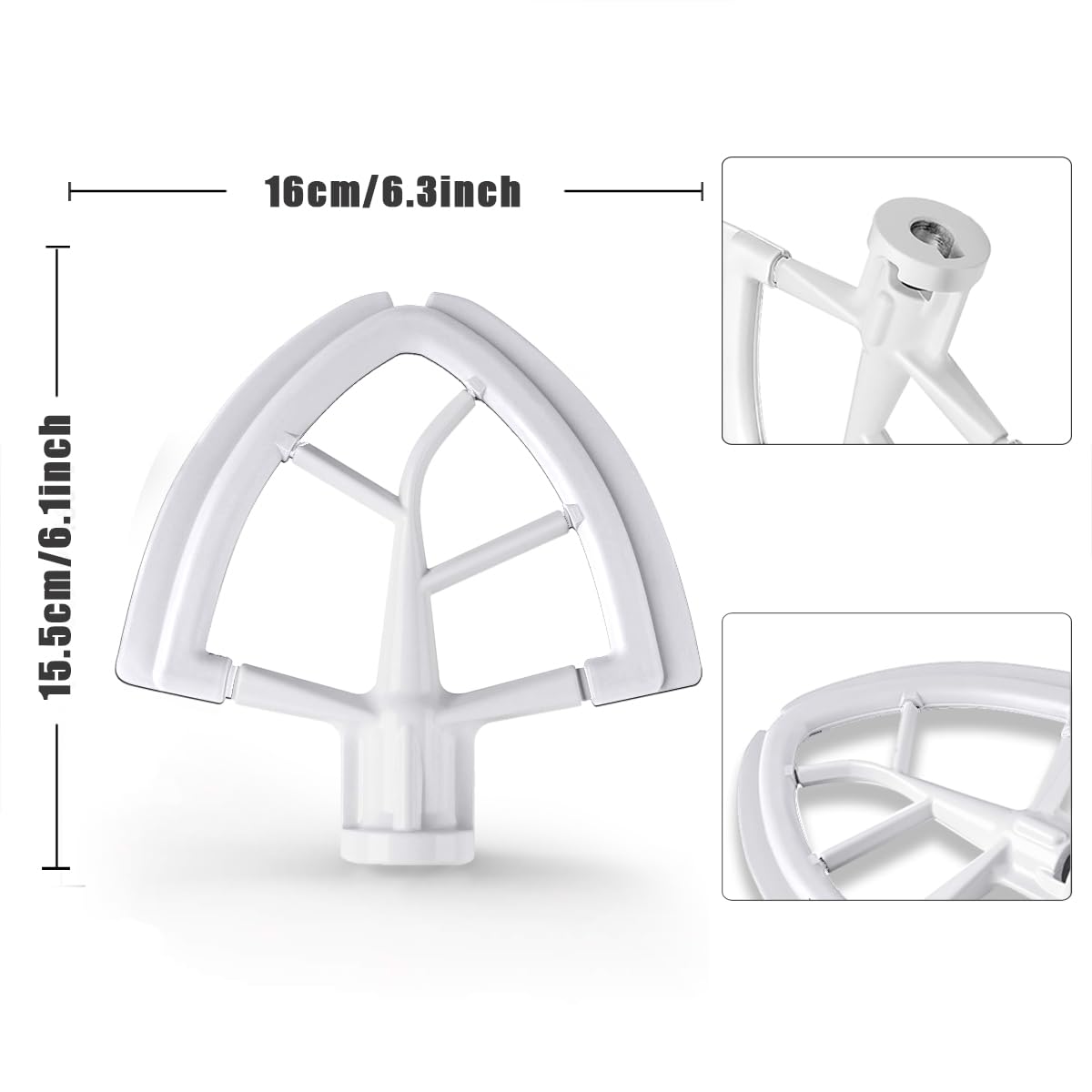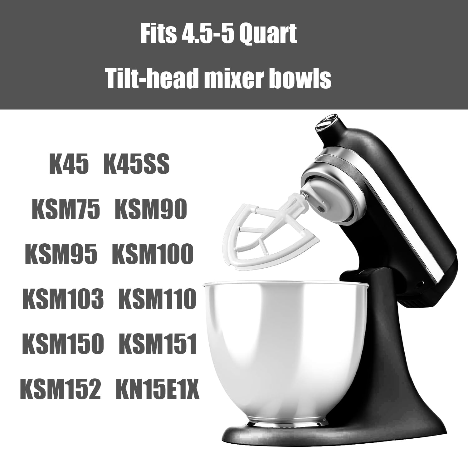 Flex Edge Beater,Mixer Accessory,Attachments For Mixer,Fits Tilt-Head Stand Mixer Bowls For 4.5-5 Quart Bowls,Beater With Silicone Edges,All White Your Satisfaction Is FOSOFAN Motivation. FOSOFAN Insists On Tenets Of "High Quality" And "Customers Come First" Specification: Size:6.3*6.1 inch Package Content:1* Flex Edge Beater Color:White Metal Construction & White Silicone Edges Material:Food Grade Metal & BPA Free Silicone Edges. Compatibility: The mixing beater blade compatible with 4.5-5 Quart Tilt-Head Stand Mixer,Fit Modles:K45SS, KSM1,KSM100, KSM120, KSM15, KSM16, KSM75, KSM8, KSM90.. Not compatible with some Costco and Sams Club Mixers. Not fit 6 Quart, Not for Bowl-lift mixer. Not for 5 qt and bowl lift style like PRO 500 and Professional Plus 5 Series Stand Mixer. to confirm the mixer model before purchasing! Main mixing jobs: 1. Idea for light to medium-heavy mixture, like: biscuits, cookies, quick breads, cheesecakes, devils food cake, waffle dough, mashed potatoes, pie pastry, creamed frostings, gum paste and more. 2. But do not use with heavy mixes such as breads, coffee cakes, rolls and buns, which should turn to dough hook or that flat beater without silicone edge.