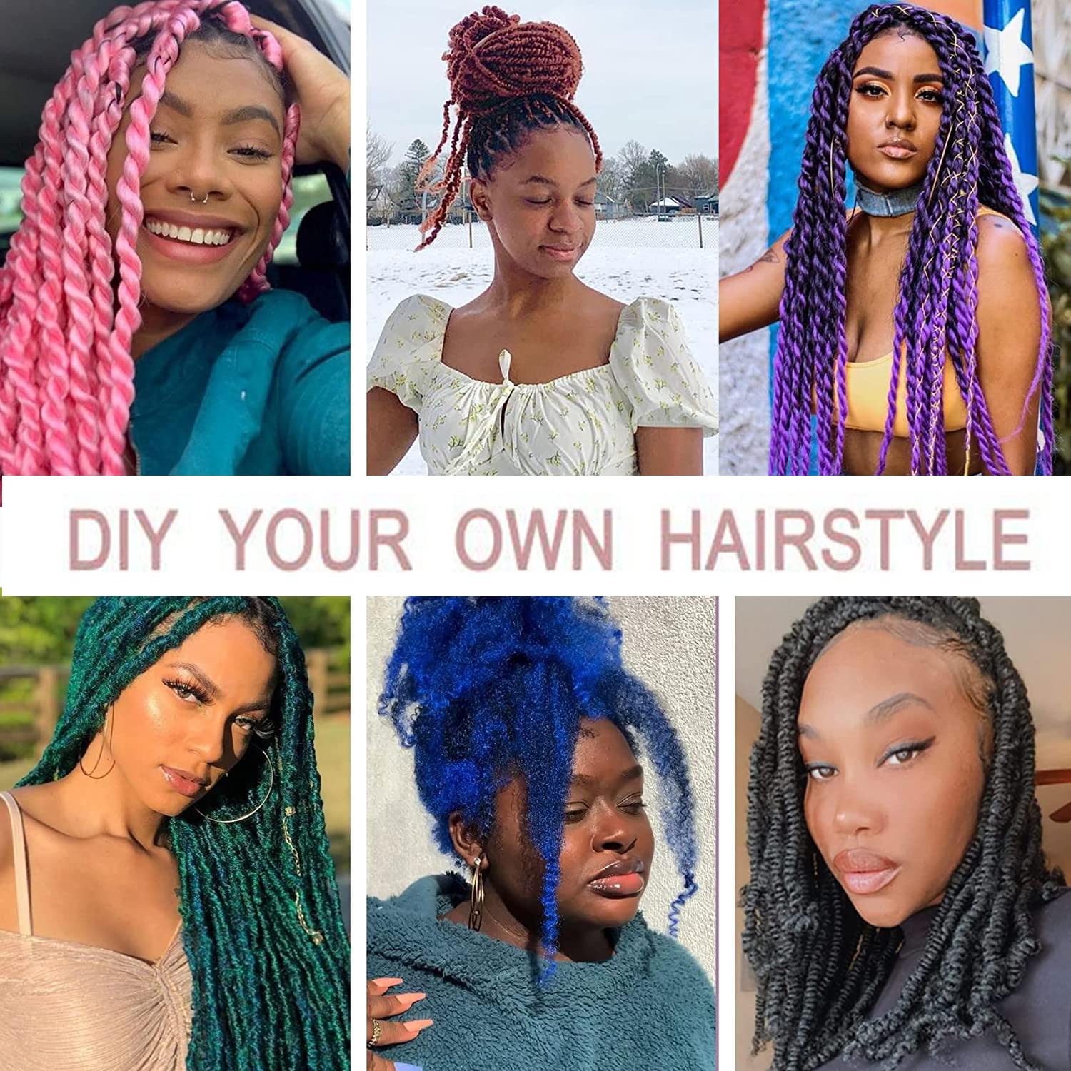 This Afro Twist Hair follows the newest fashion trend and create a unique fashion. It can be used for daily, party, cosplay, performance, wedding, etc. Daily use and any time you like to show your charm