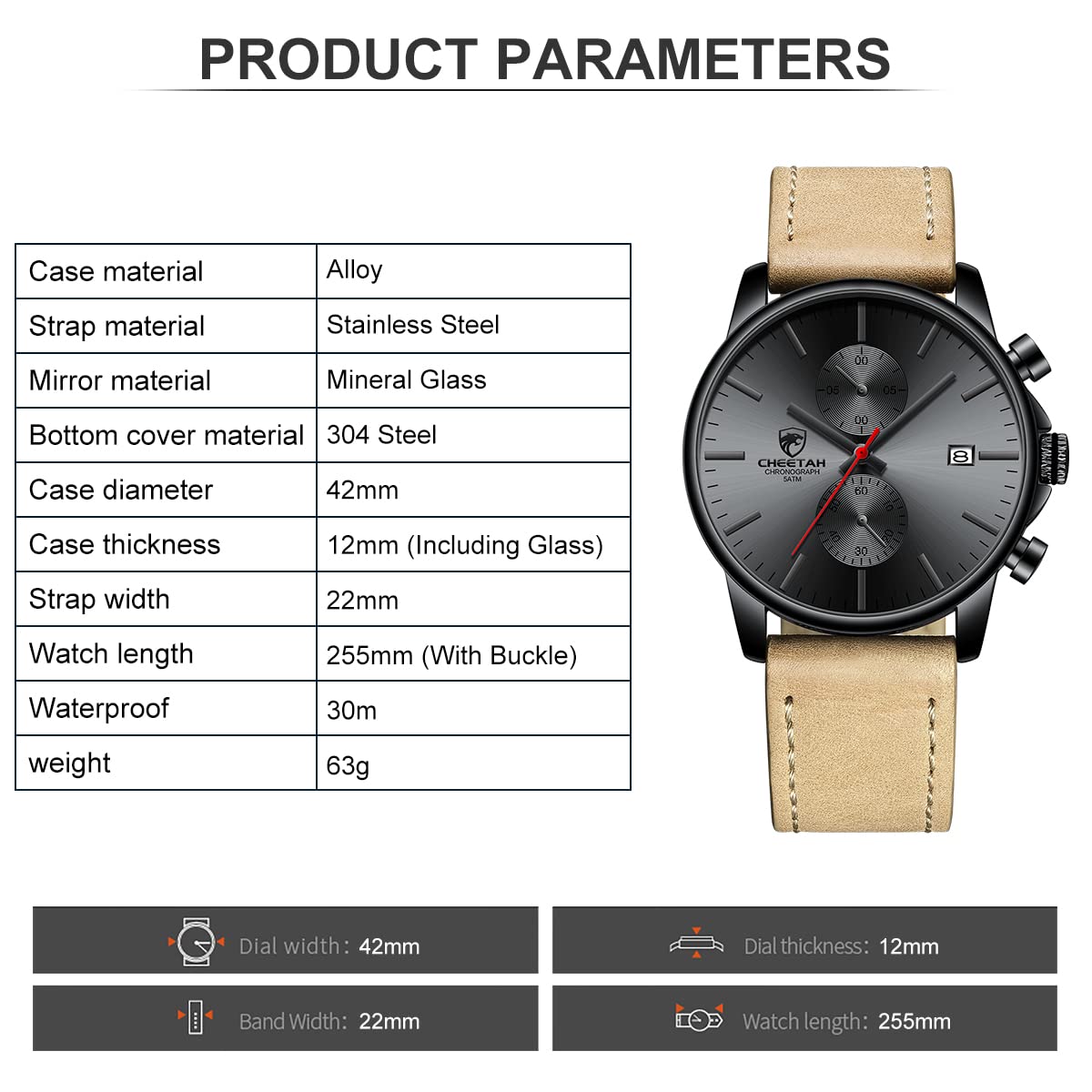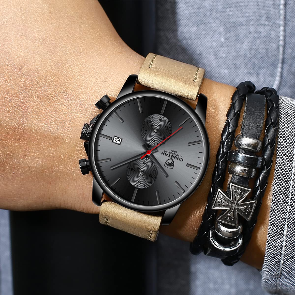 ⌚Sports chronograph: Multifunctional sub-dial can work, chronograph, calendar, run seconds. Provide you with multi-function purpose use.