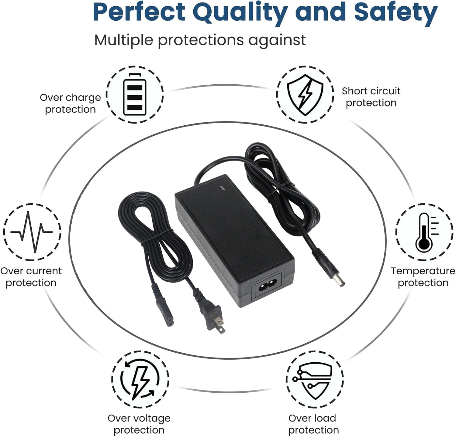 【Secured&Mulity-protection】:Built-in intelligent protection system, with over-current, over-voltage, short-circuit, stability and other safety protection technologies to protect your equipment. The power supply has sufficient power and has undergone aging tests, using high-quality copper core