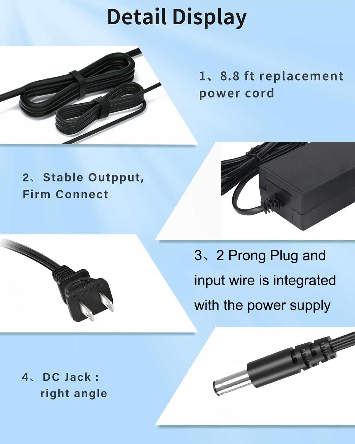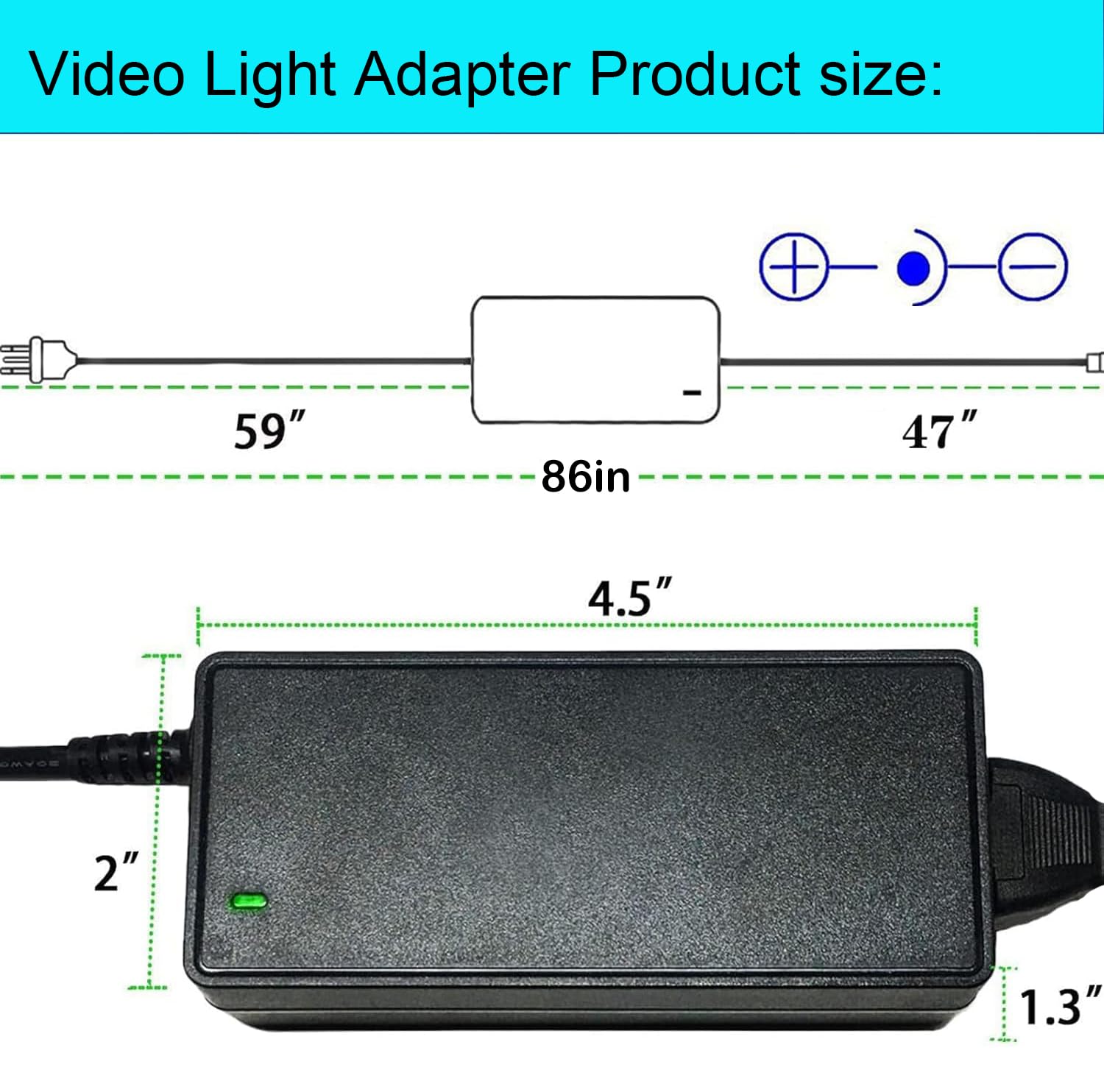 【What You Get】: 1 * 15V Video Light Power Adapter .1 * 5 Feet US plug AC power cord. 24-month warranty. Any questions feel free to contact us