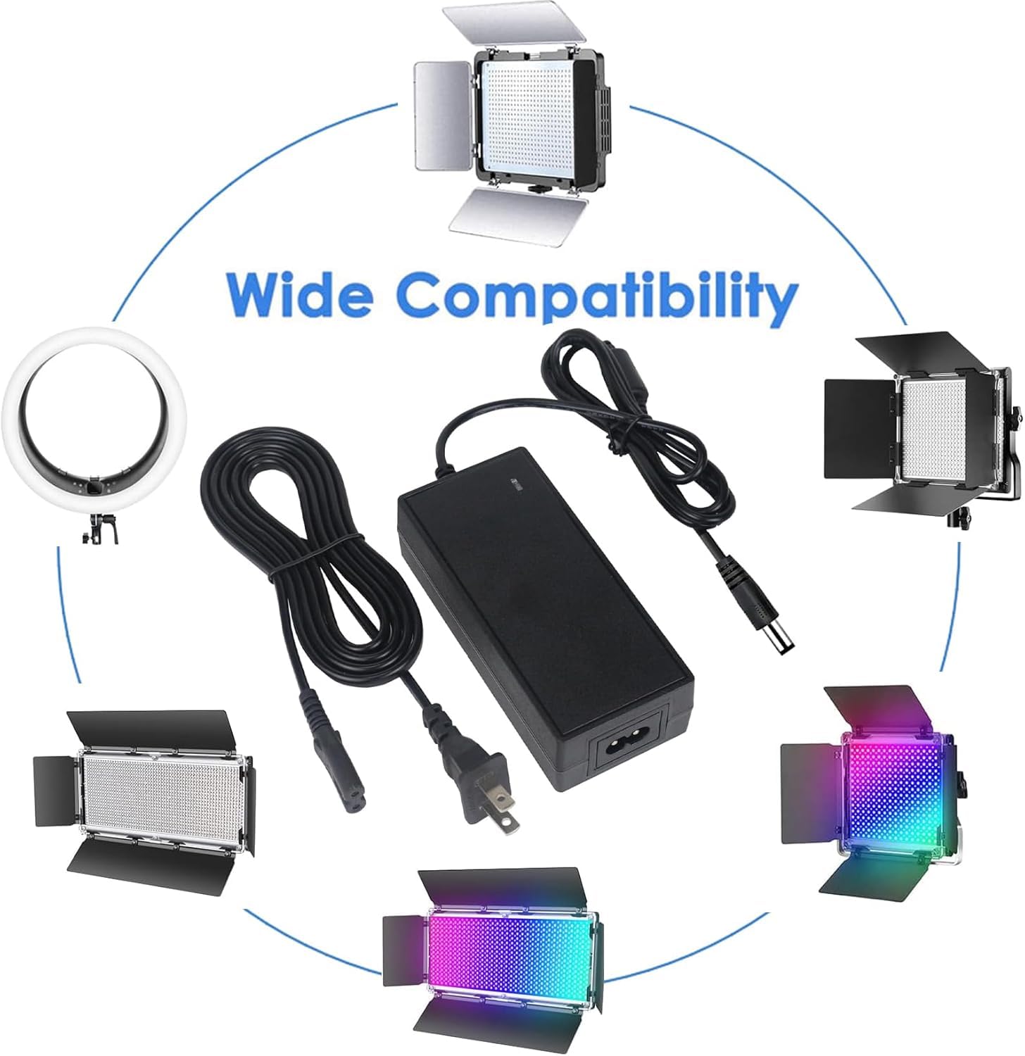 【High Quality Material】The Video Light Power Adapter is very durable and easy to operate. It is with multi safety protection and secure to use. Higher energy efficiency, friendly to the earth.