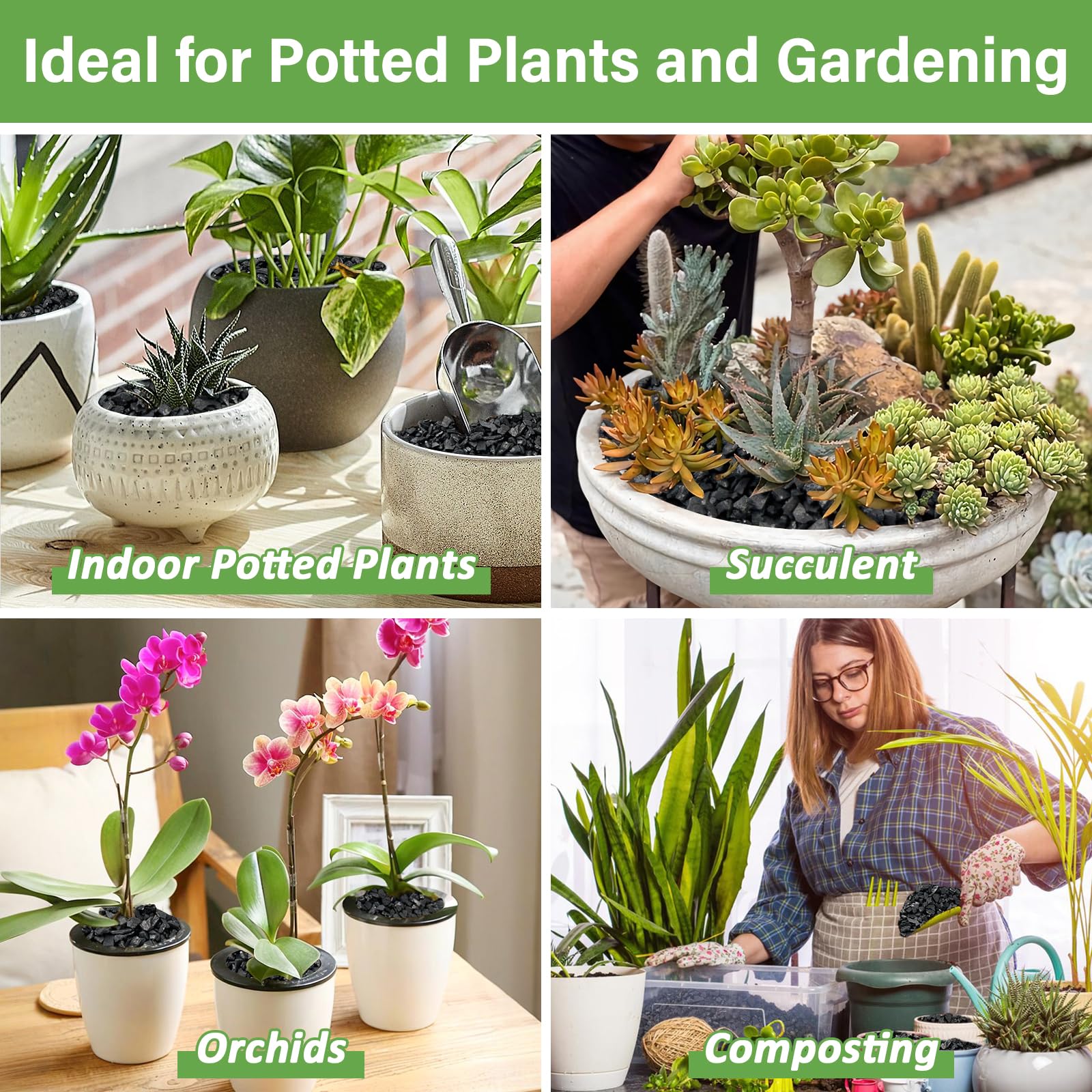 Soil Amendment: Our garden charcoal through layer-by-layer screening and mesh sieving, you will get 2 qt charcoal obtained which size is 3-7 mm, small to medium size to keep soil from compacting on roots of potted plants, small size is perfect for houseplants and can be easily mixed into the soil; Black charcoal absorbs heat from the sun, which increases soil temperature and encourages seed germination