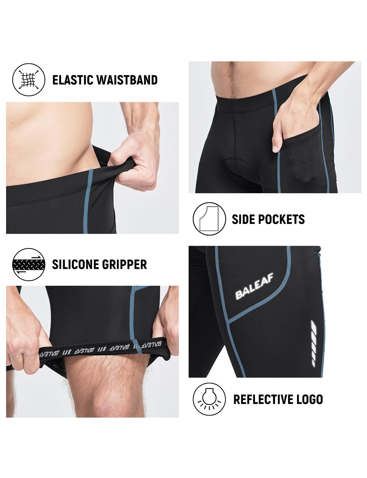 Utility Pockets: Two big side pockets can hold 5.5" mobile phone for great convenience, making it easy to access while riding but keeping the items in place. Reflective elements of the men cycling shorts for low-light visibility while riding.