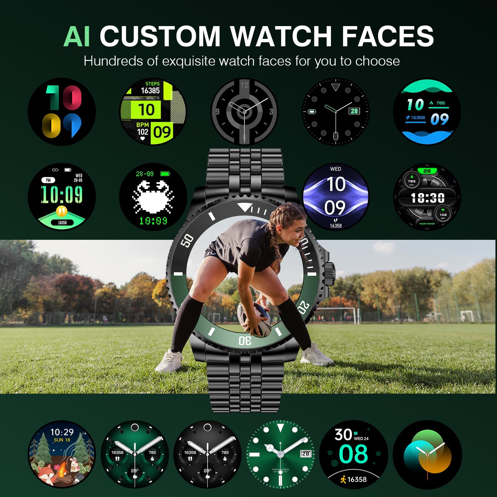 [AI Smart Assistant, New Efficiency Experience] The smartwatch is equipped with the DA GPT AI system, which supports voice commands to generate fitness plans, meeting summaries, and travel guides. With the AI smart watch face, simply speak your request (e.g., "I want a starry sky theme") to automatically generate a personalized watch face. Bluetooth 5.2 connectivity allows you to activate your phone's voice assistant, open navigation, and more, allowing technology to truly serve your life.