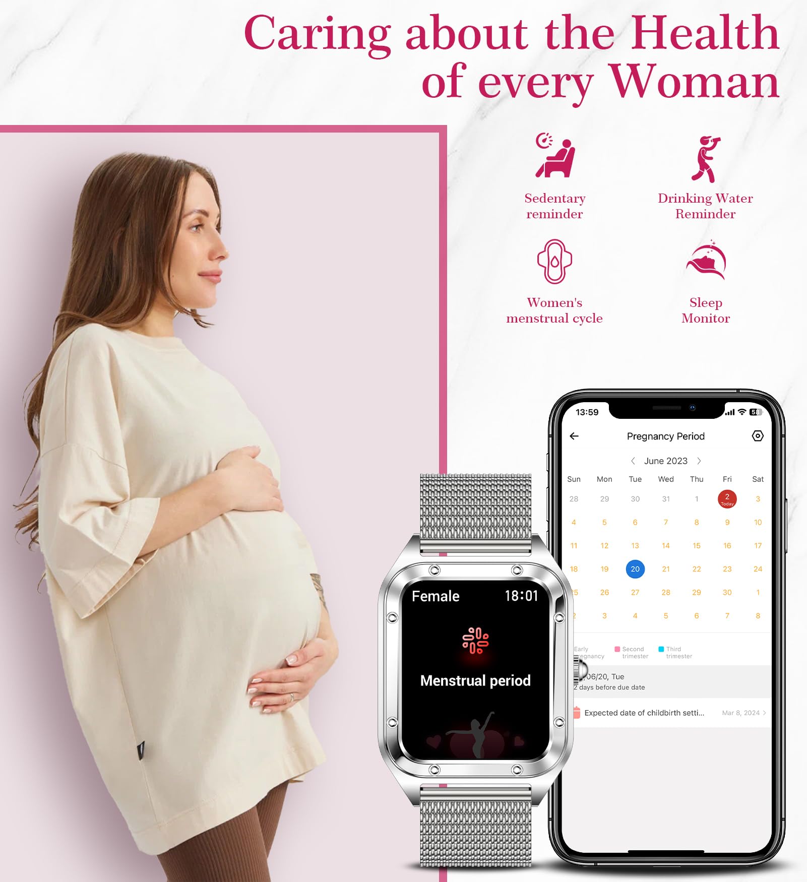 Multifunction and Compatibility: The smart watch for Android iphone compatible(Android 6.0+ and iOS 9.0+). The battery has a capacity of 250mAh and can be used for 3-7 days (depending on usage). The smart fitness watch for women has functions such as women's menstrual cycle, drinking water reminder, sedentary reminder, weather display, music, remote camera control, alarm clock, stopwatch, timer, and phone search. The best original gift for women!