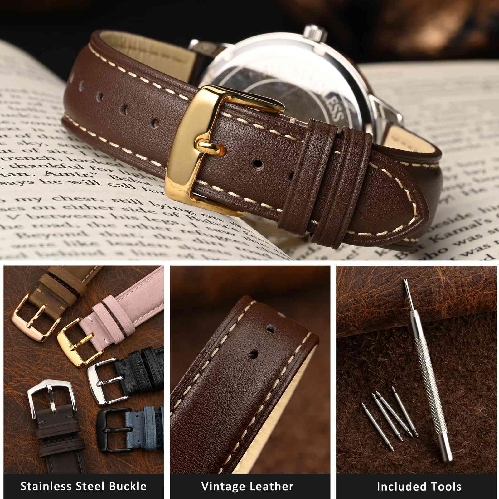 COMPATIBLE: This watch strap is designed to fit most traditional watches and smart watches which lug width is standard 14mm, 16mm, 18mm, 19mm, 20mm, 21mm, 22mm, 23mm, 24mm.