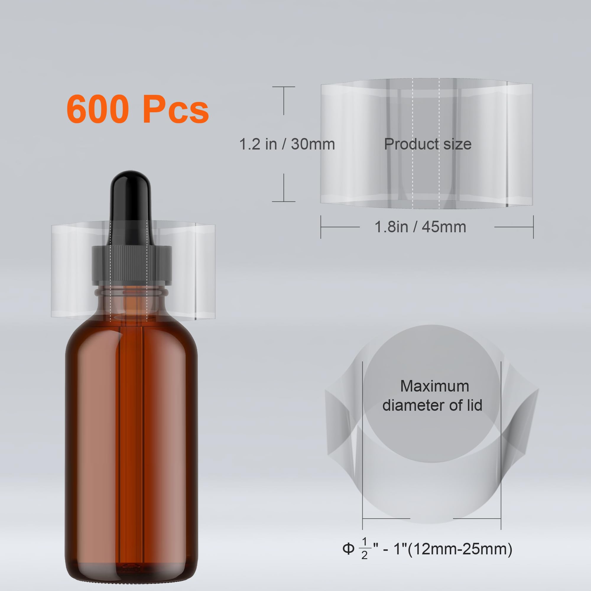 【Easy to Use】Our heat shrink bottle sealer have a high shrinkage rate and are easy to use. Simply put your dropper or lid in the shrink bands and use a heat gun or hair dryer to achieve a perfect seal. Features two easy-to-tear lines for convenient removal without additional tools.