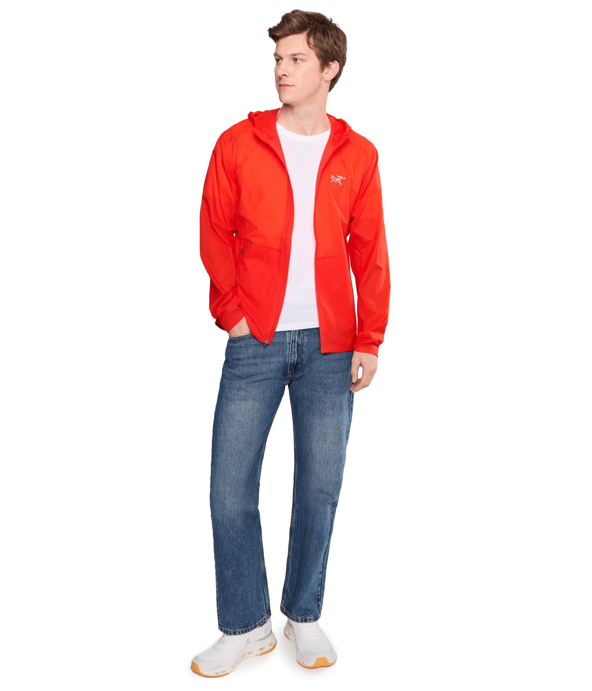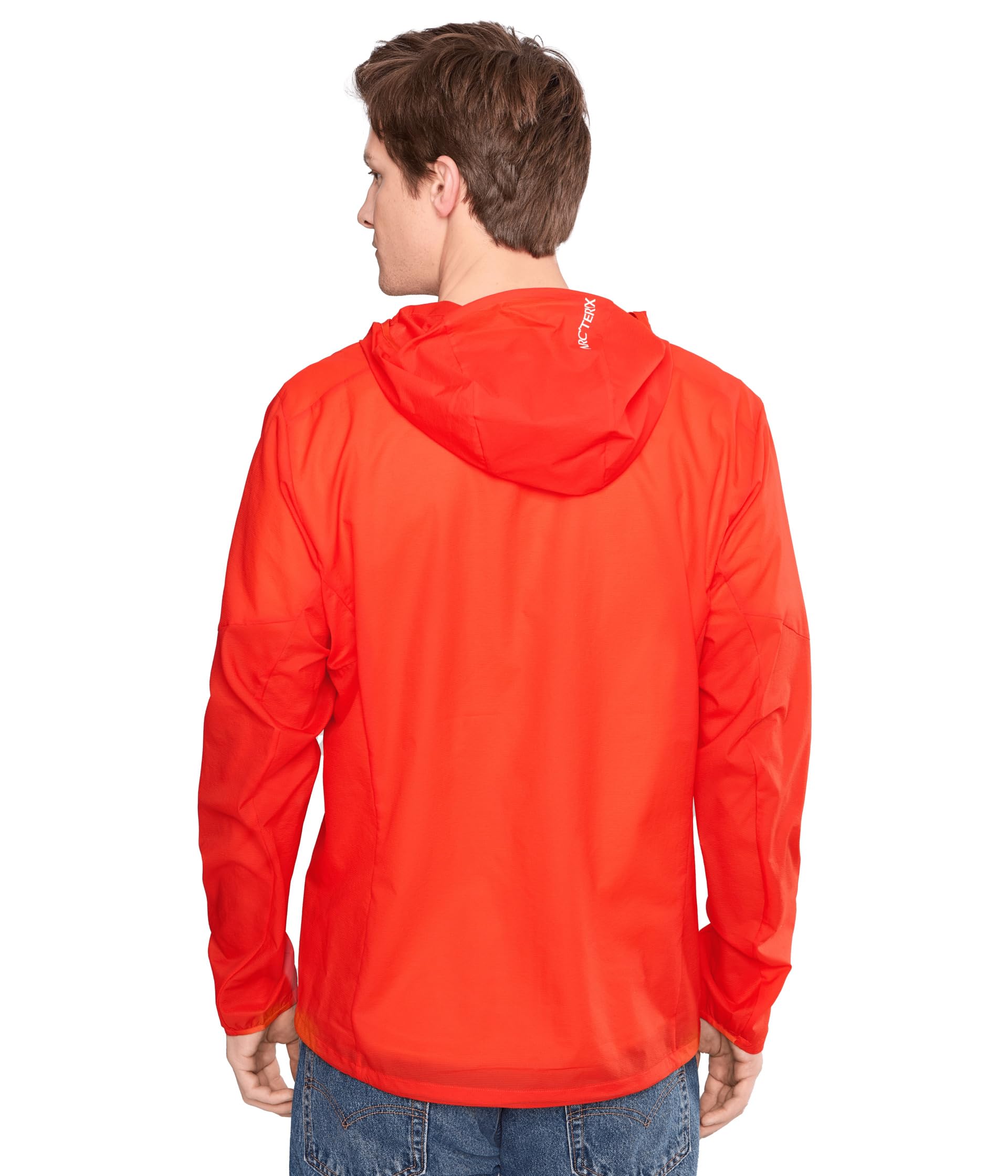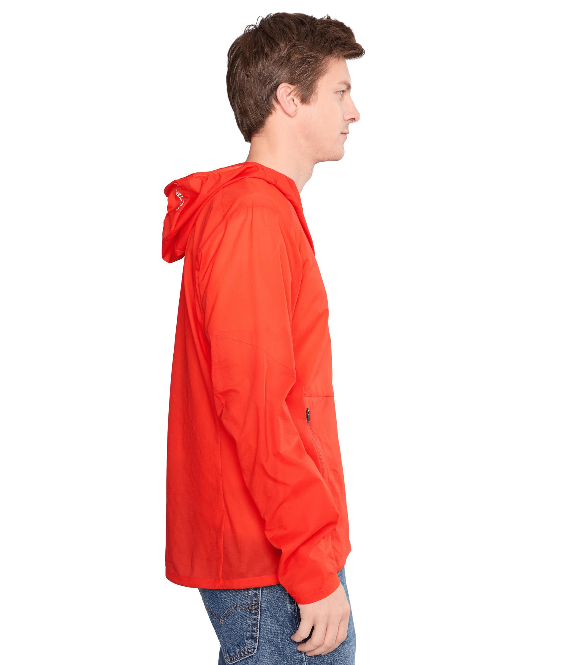 Description Ultralight Airshell double weave nylon is highly air permeable, stretches, and is exceptionally comfortable next-to-skin | DWR (Durable Water repellent) finish repels moisture | Reverse coil zippers for a clean finish | French seaming for a clean finish | Hand pockets stow small essentials | Elastic binding secures hood and cuff openings