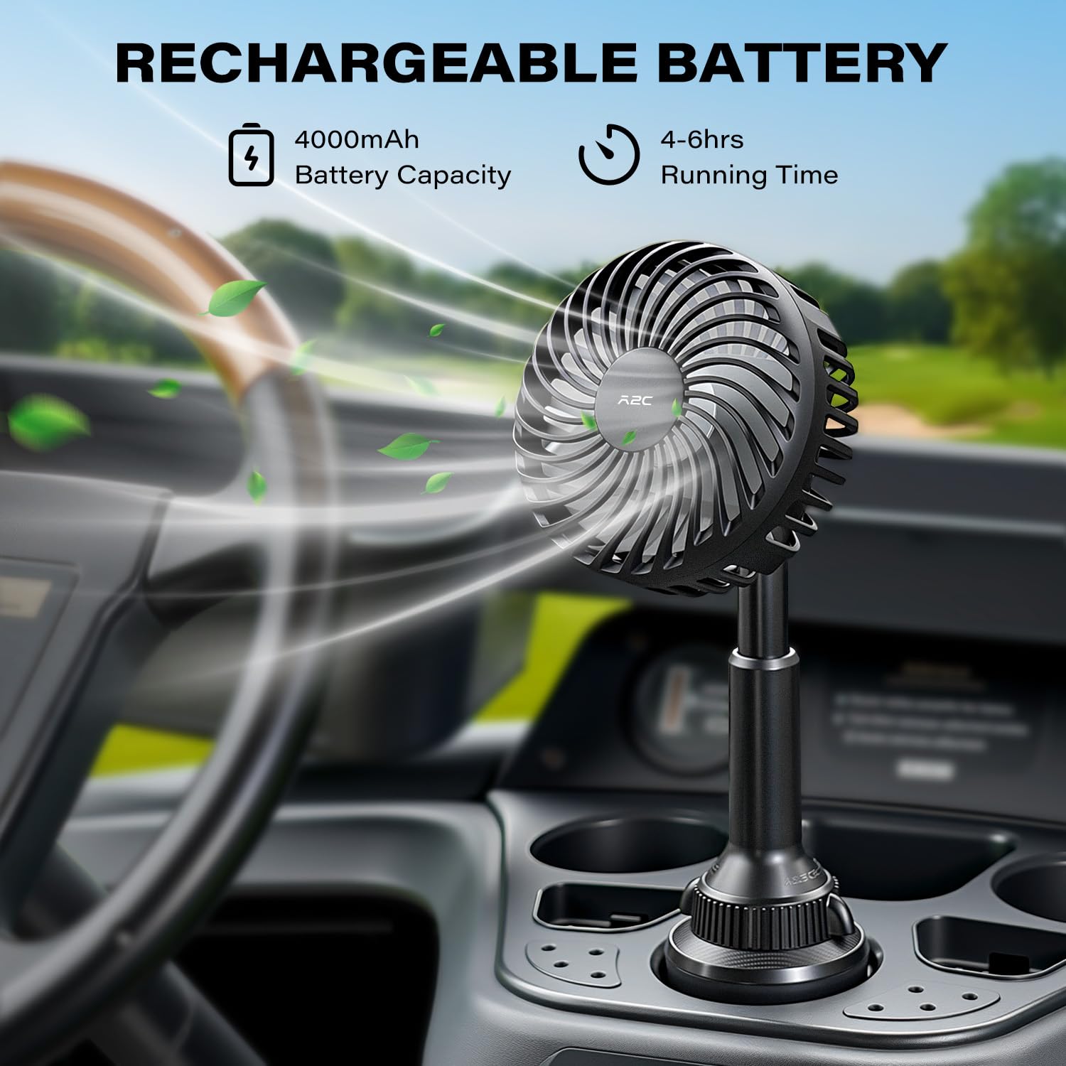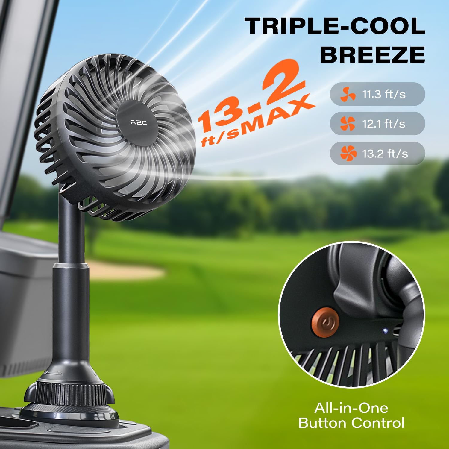 Rechargeable & Long-Lasting Cool: The 4000mAh battery equipped in this golf cart fan provides up to 6 hours of powerful, wireless cooling—perfect for long days on the golf course. No cables, no hassle!