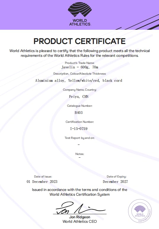 Whether you're aiming for personal bests or vying for the podium, this 600 gram javelin empowers you to be the best version of yourself, delivering unparalleled performance with every throw.