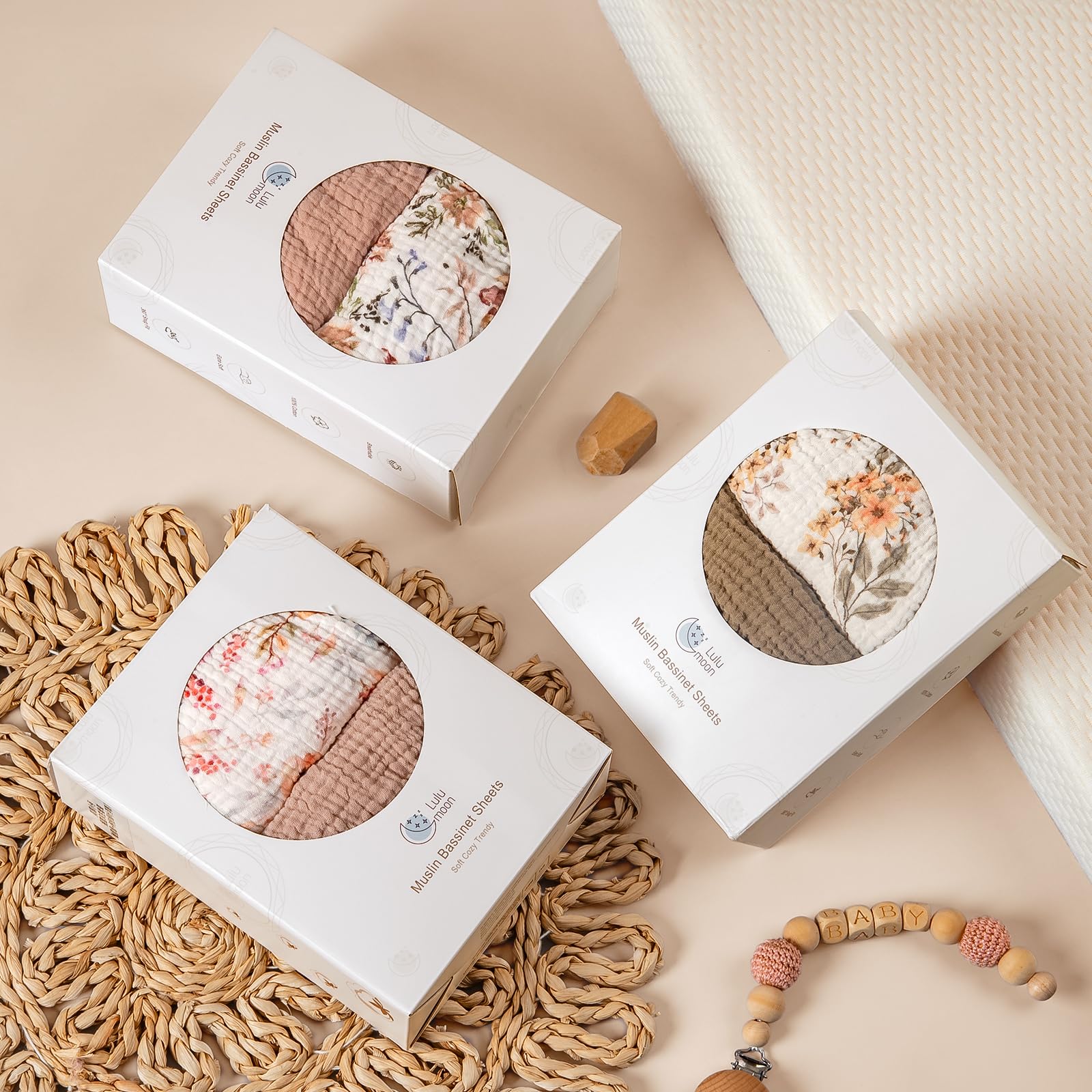 Secure Elastic Edging: These bassinet fitted sheets features premium stretch elastic that contours securely to mattress corners without gaps or slipping. The reinforced binding maintains perfect tension wash after wash for lasting performance.