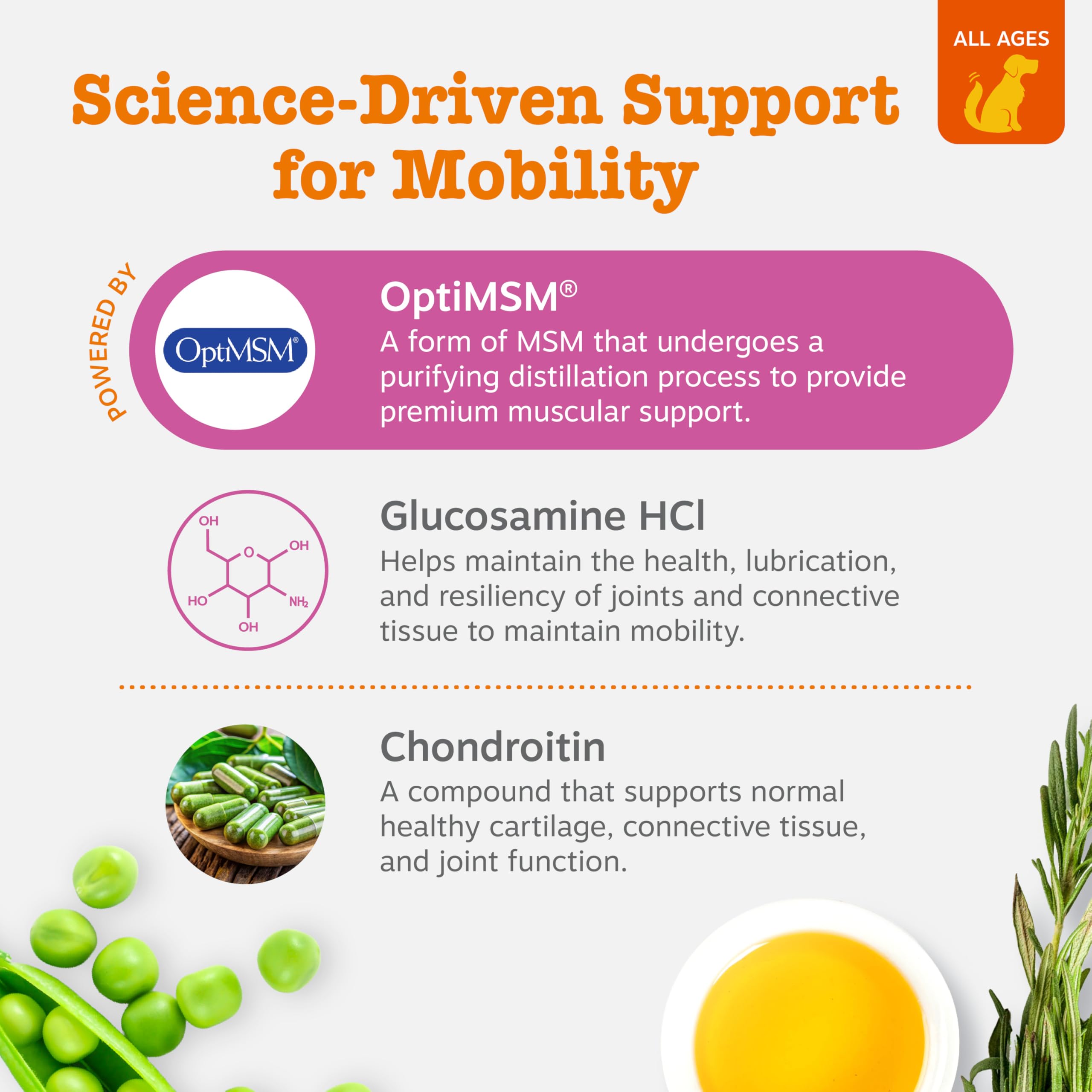 FEATURING OPTIMSM: Each hip and joint chews for dogs contain 500 mg of OptiMSM, offering distilled MSM for enhanced muscle flexibility, supporting your dog's comfort