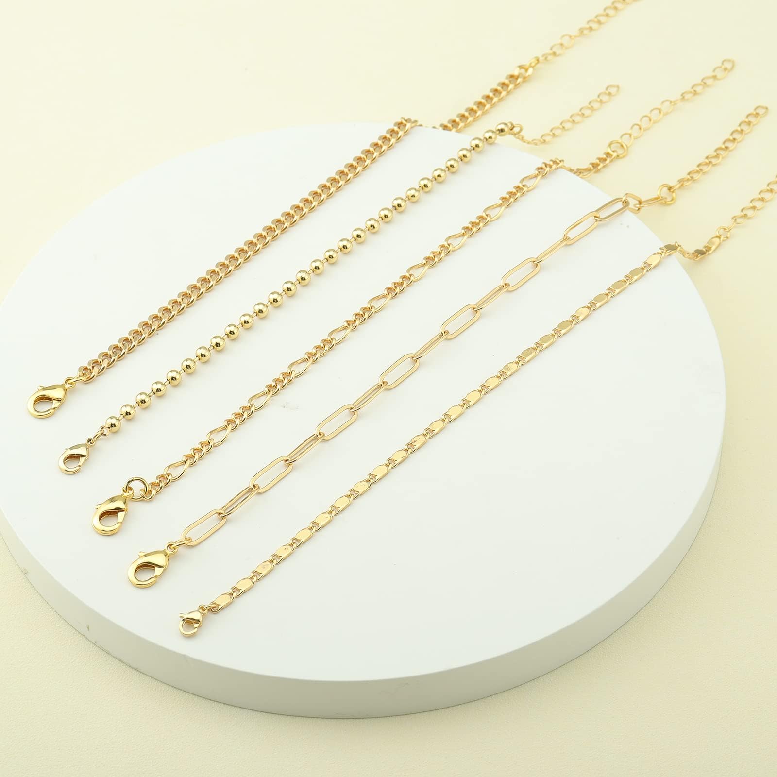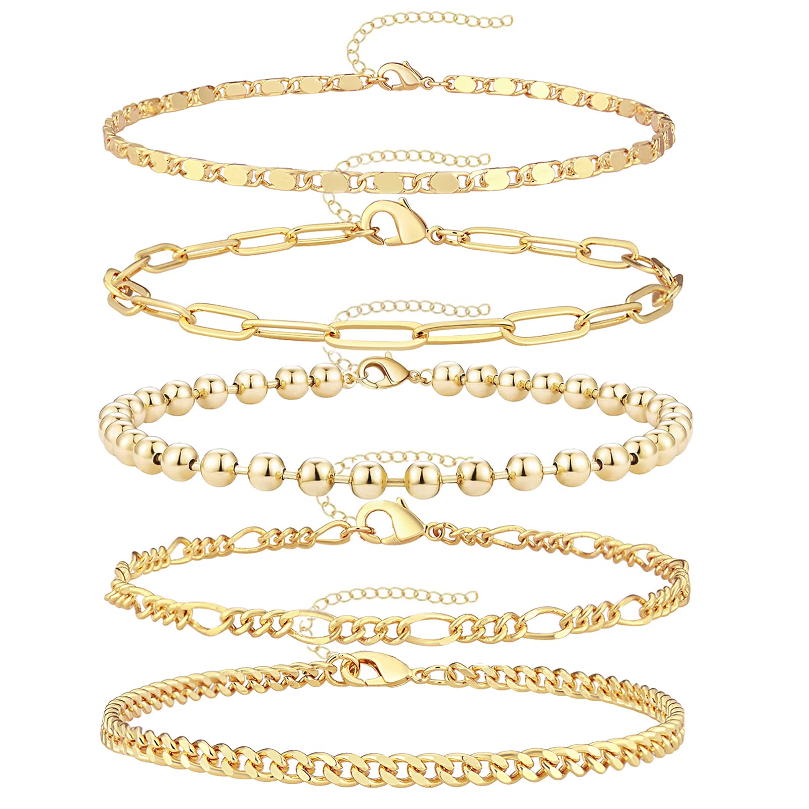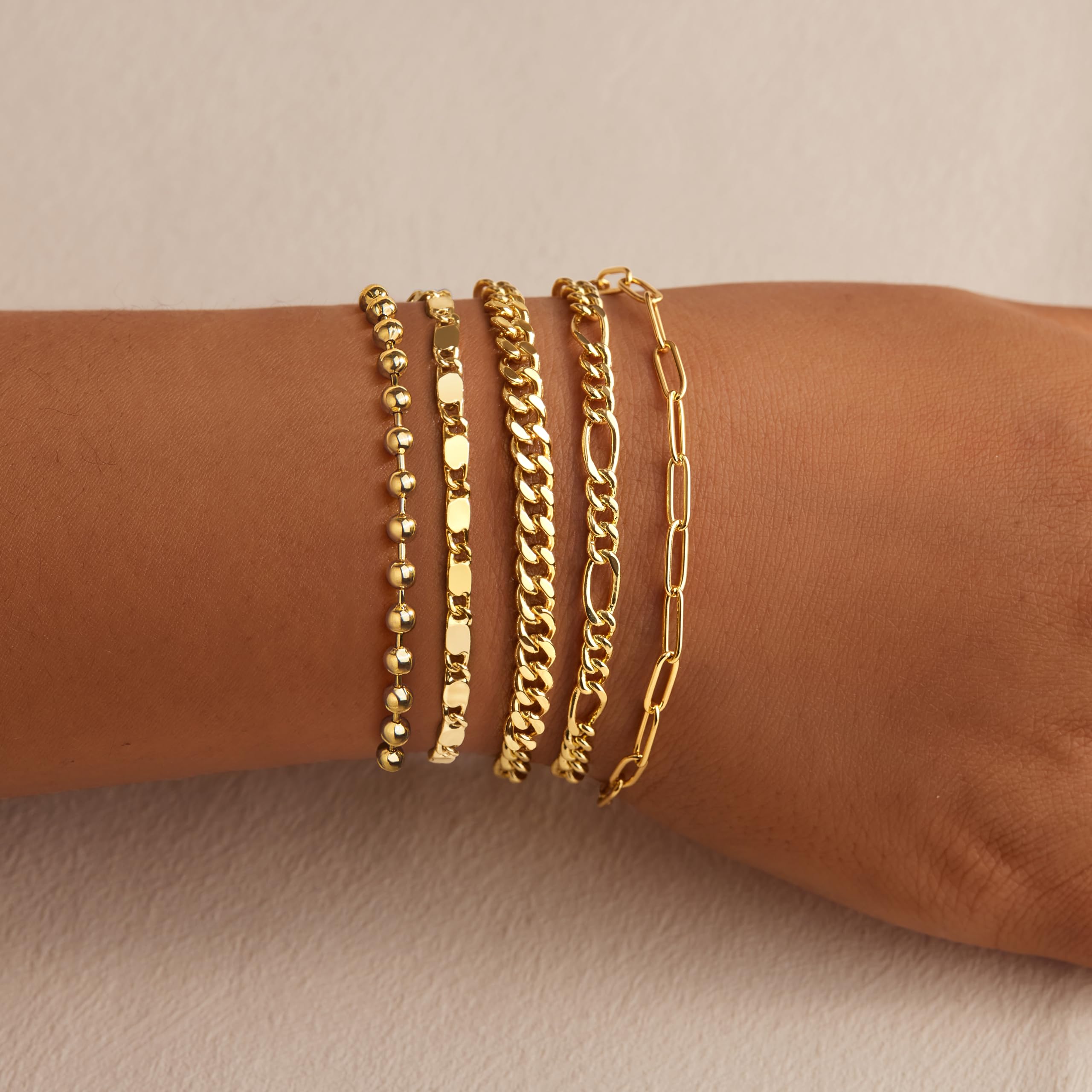 5 Separate layered bracelets:This stackable bracelets for women consists of a 5 style chain bracelets. Including satellite chain/paperclip link chain/mirror chain/figaro chain/cuban chain. You can wear all of them or separate. You have a choice how you wear them for your everyday