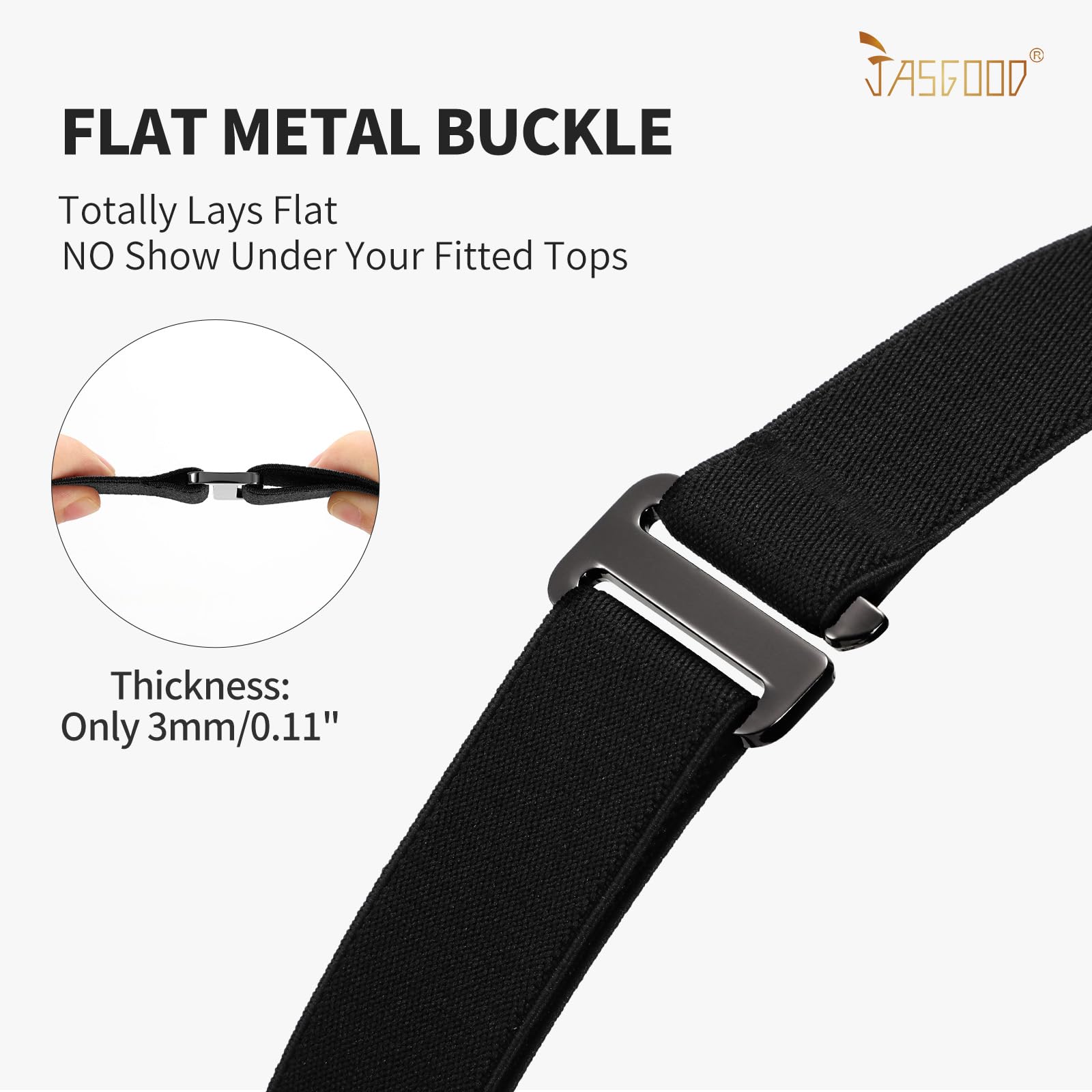 Adjustable Size--- The no show elastic belt is so convenient and easy to adjust by moving the adjustment clip like a bra strap to make it tighter or looser. Buckle length:1.57”, belt width:1.18”. Suits for US size 0-16+.