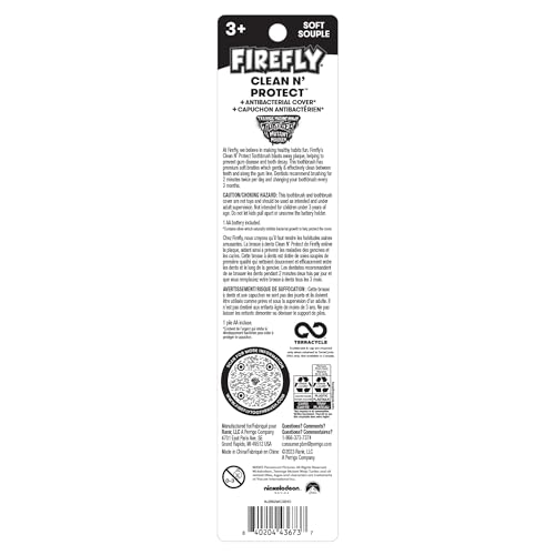 Make brushing fun with Firefly's Clean N' Protect Teenage Mutant Ninja Turtles Toothbrush. The buzz of the rotary power and soft bristles helps encourage little ones to brush effectively. With stronger plaque-busting cleaning power than a manual children's toothbrush, little hands can remove plaque from their teeth. The kid-sized design makes it easier for children to clean those hard-to-reach areas of their mouth, while the massaging action of the premium soft bristles gently and effectively cleans between teeth and along the gum line. This kids toothbrush is battery-operated, so it does not require a cumbersome cord or a charger. More fun than manual brushing, kids will ask for this Firefly Clean N' Protect toothbrush featuring their favorite Teenage Mutant Ninja Turtles character by name. Any child can help defend their mouth against gum disease and tooth decay with the Firefly Clean N' Protect rotary toothbrush.