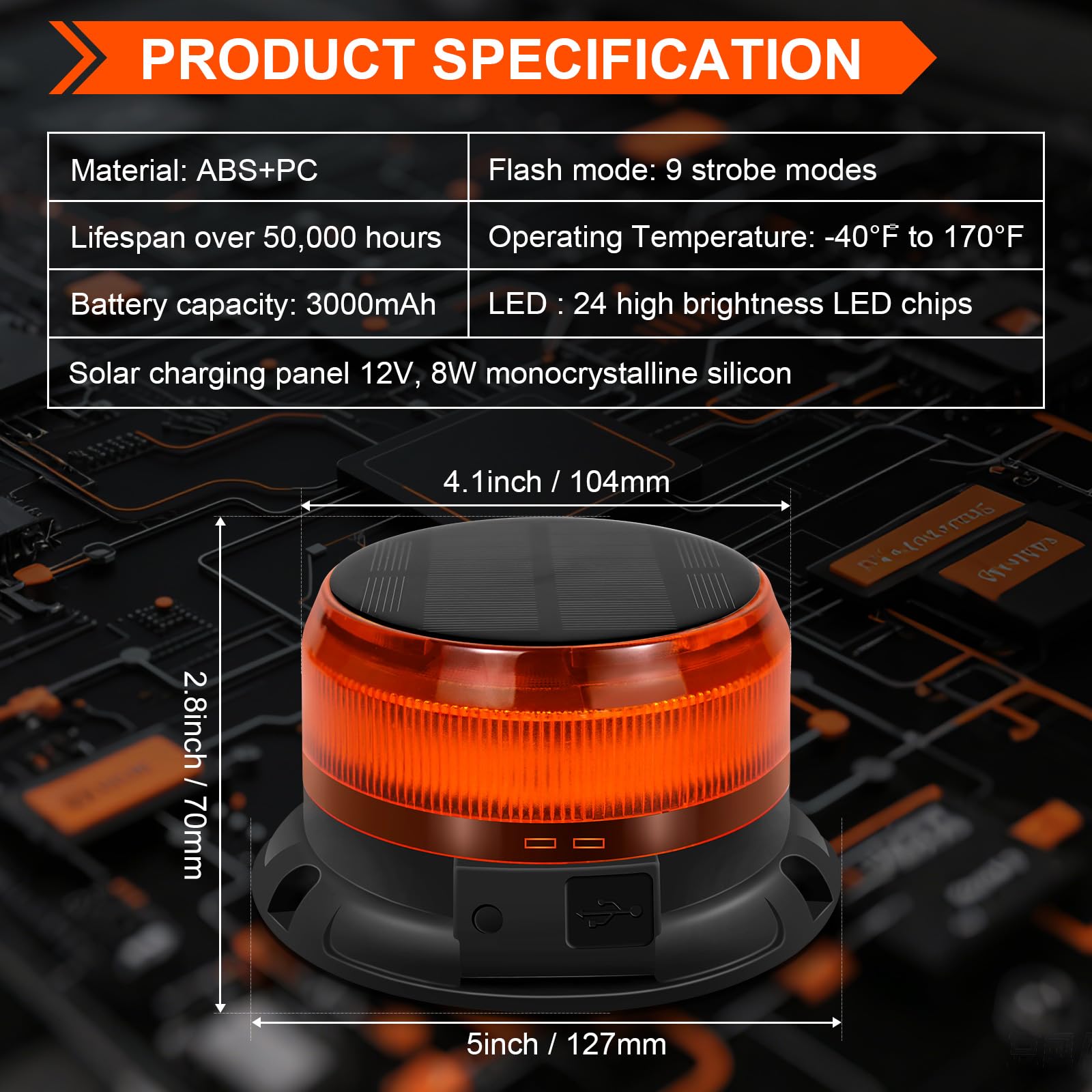 360° Eye-Catching Visibility: Ultra-bright rotating LEDs with 9 modes (strobe/slow flash/steady) make vehicles visible in fog, storms, or dark campsites. Essential for accident scenes, construction zones, and RV night parking