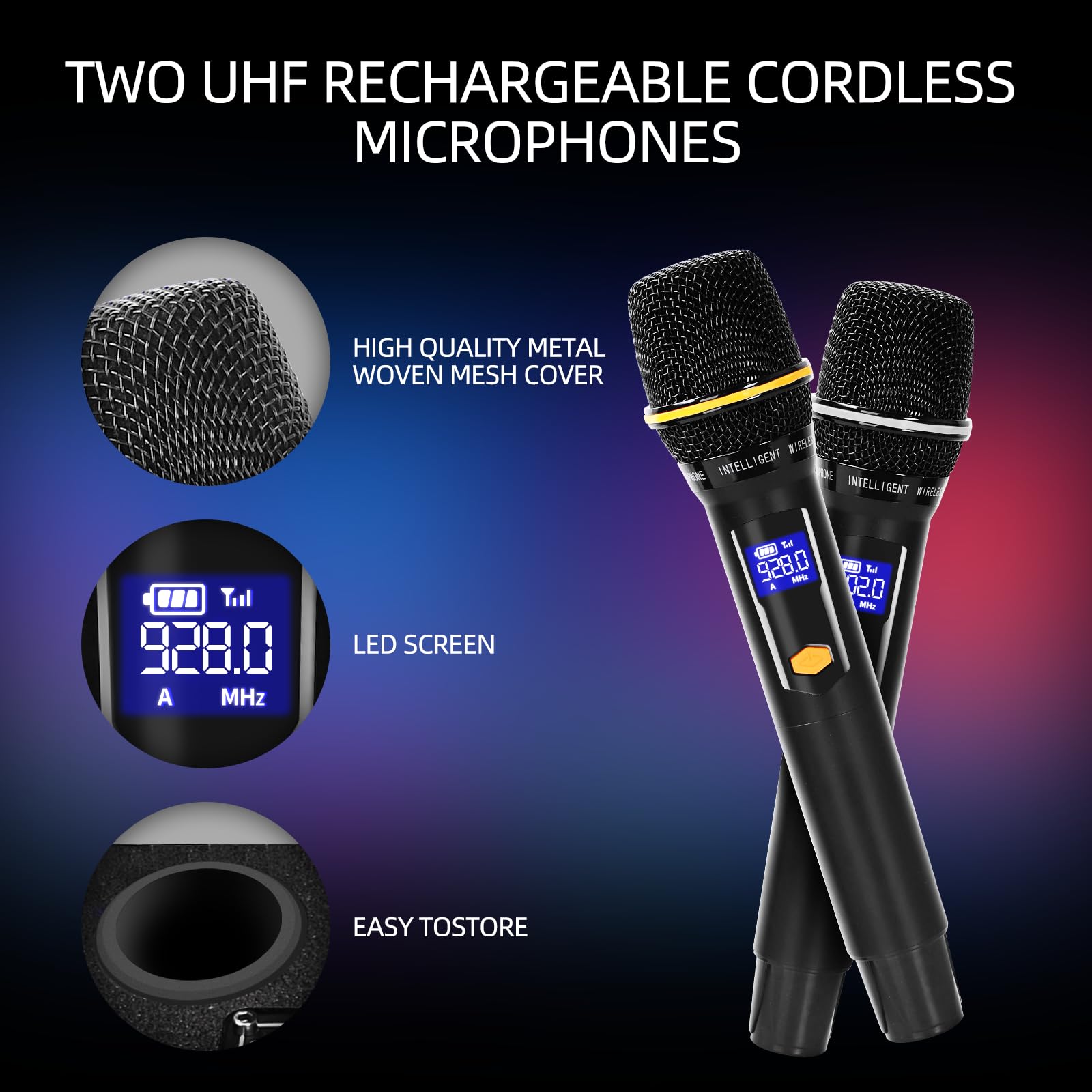 Portable and Convenient: It adopts durable swivel wheels and pull rod design, easy to carry. Everything is organized for a travel. A 6-hour rechargeable battery in this karaoke machine with screen means you can bop your battlecry anywhere
