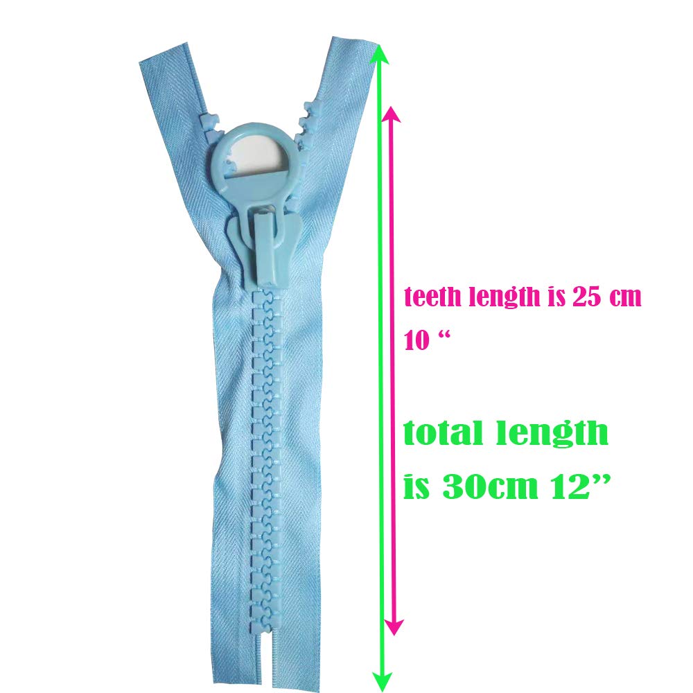 20 Super Separating Large Plastic Zipper Made from high quality plastic to ensure extra strength & reliability. Quantity : 2 pcs Color : Alaskan Blue Pantone 15-4225 TPX There may be small differences in color due to different displays. ★SPECIAL POINT-- This item is super large zipper, very large teeth and strong with big puller ,★★There are no zipper stops on then and no start catch on the zipper, please kindly check the pictures carefully ,. If you are not looking for such large zippers, please do not buy it.