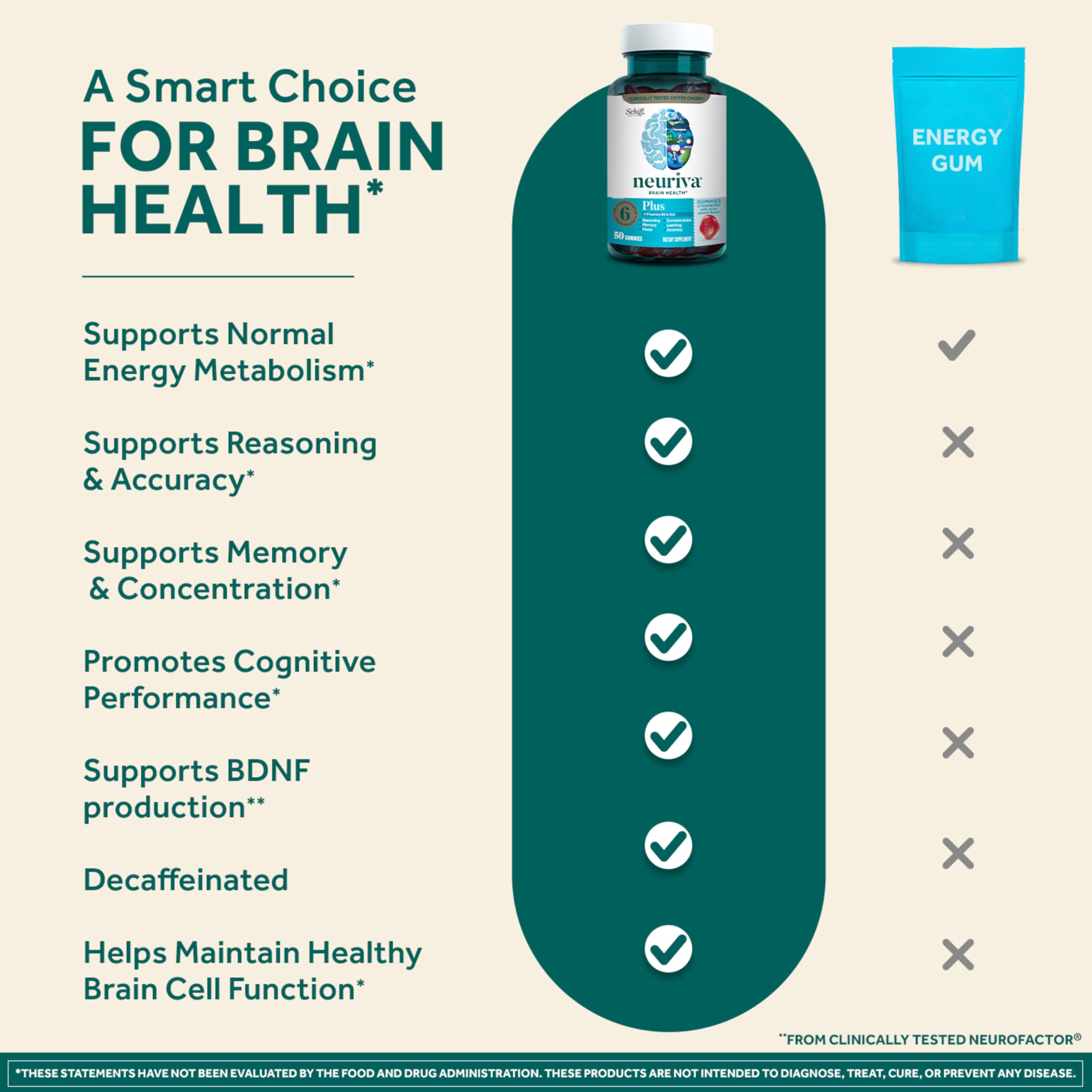 PEACE OF MIND: Neuriva Brain Support Supplements, like all Schiff products, are guaranteed for freshness, purity, and labeled potency