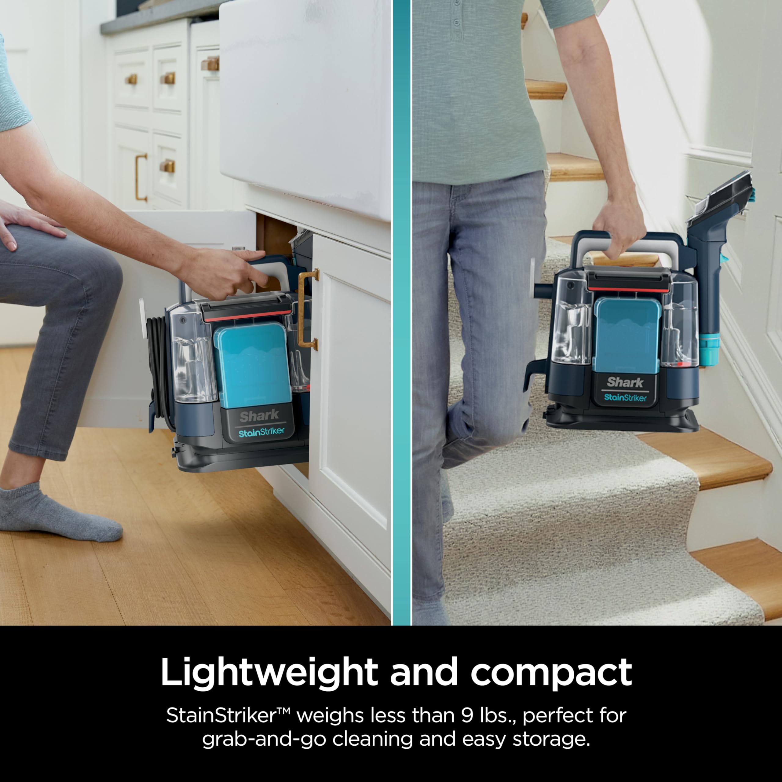 Whole Home Cleaning: Lightweight & compact at under 9 lbs. Clean and remove stains anywhere and conveniently store when finished.