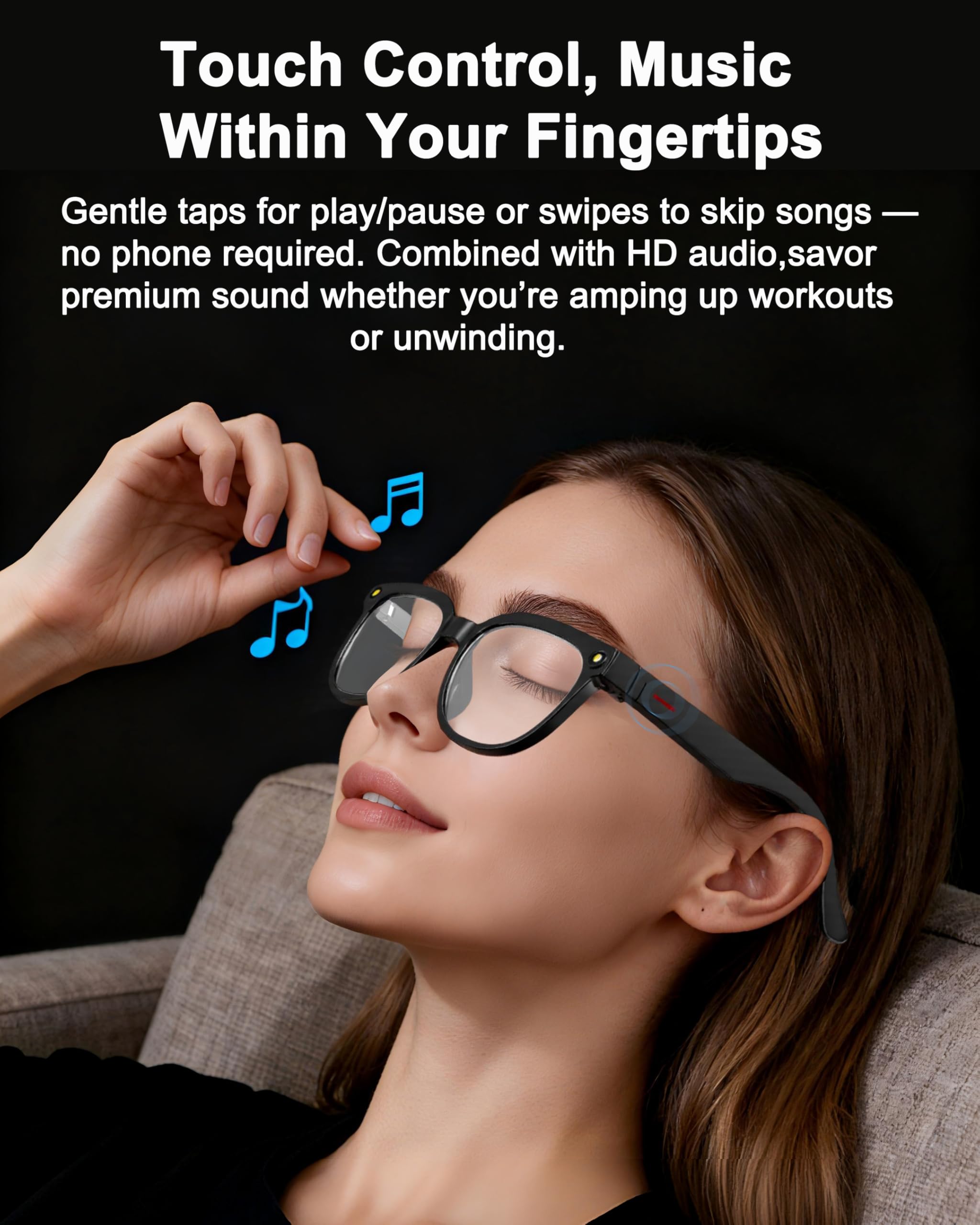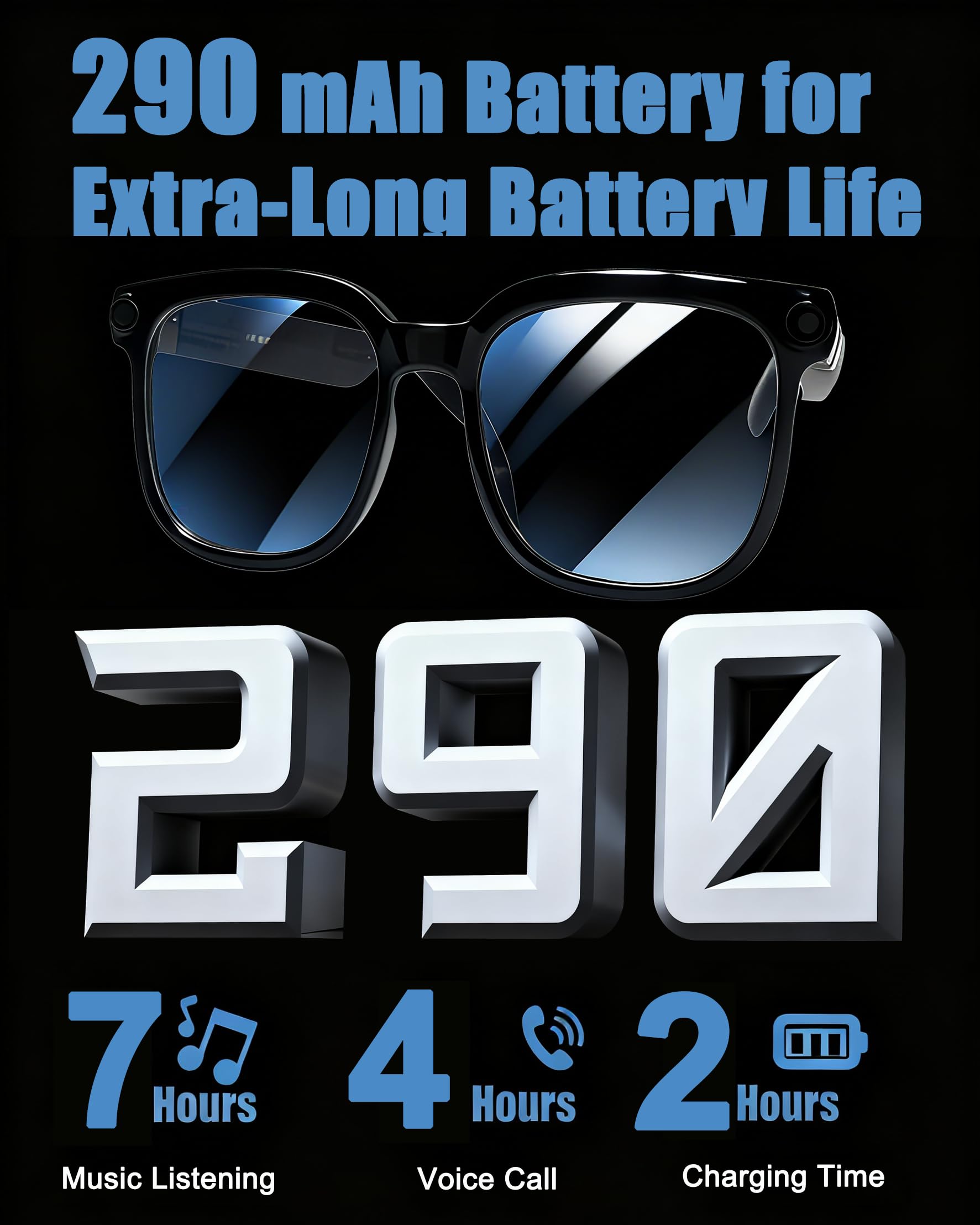 【SEAMLESS BLUETOOTH CONNECTIVITY & LONG BATTERY LIFE】Easily connect to your smartphone for file transfer and music control. Enjoy extended use with a long-lasting battery, making these bluetooth smart glasses your perfect daily wearable tech companion.