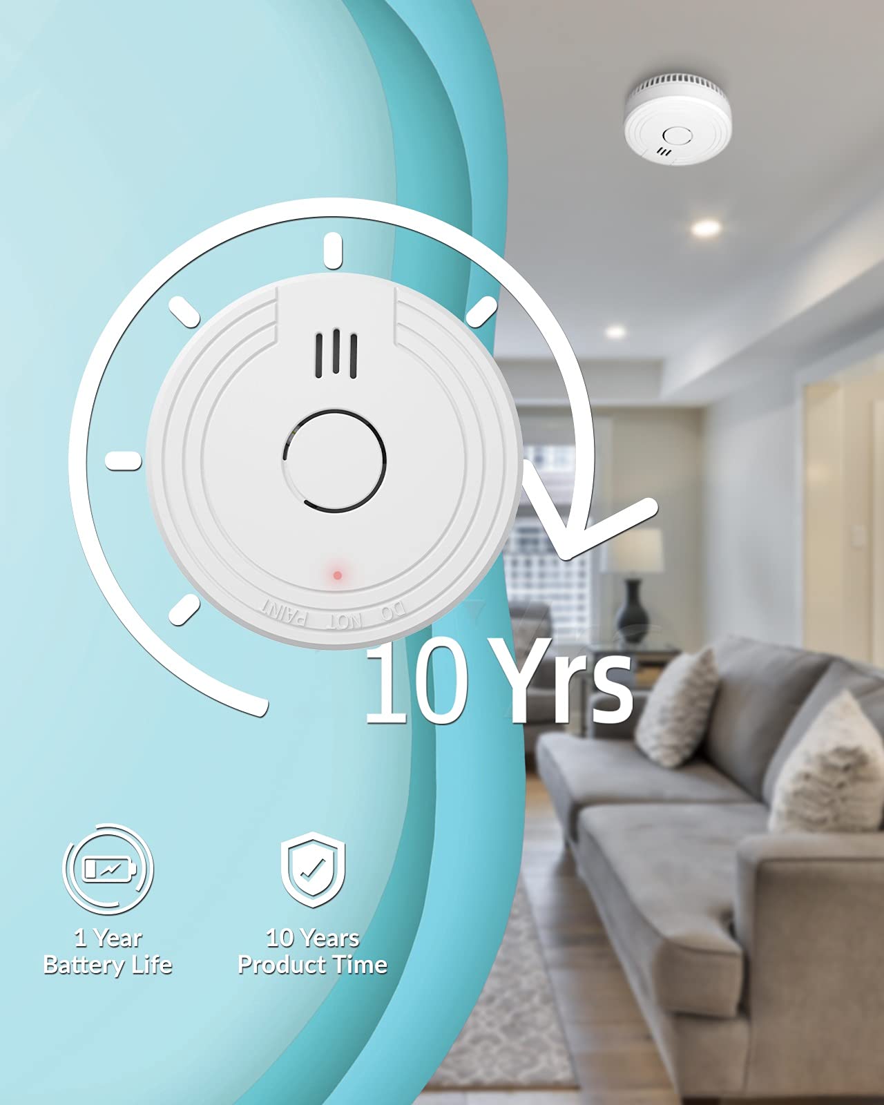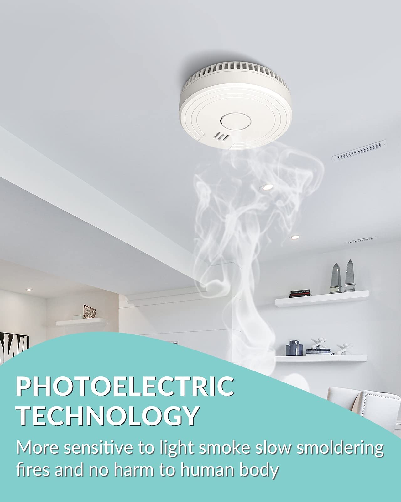 High Accuracy: Photoelectric smoke detector is small, but it is more sensitive to light smoke and slow smoldering fires and more quickly to warn you, keeping your home safe 24/7. Small size, DIA 3.3 inches. If you have any problem with smoke detector, please contact us