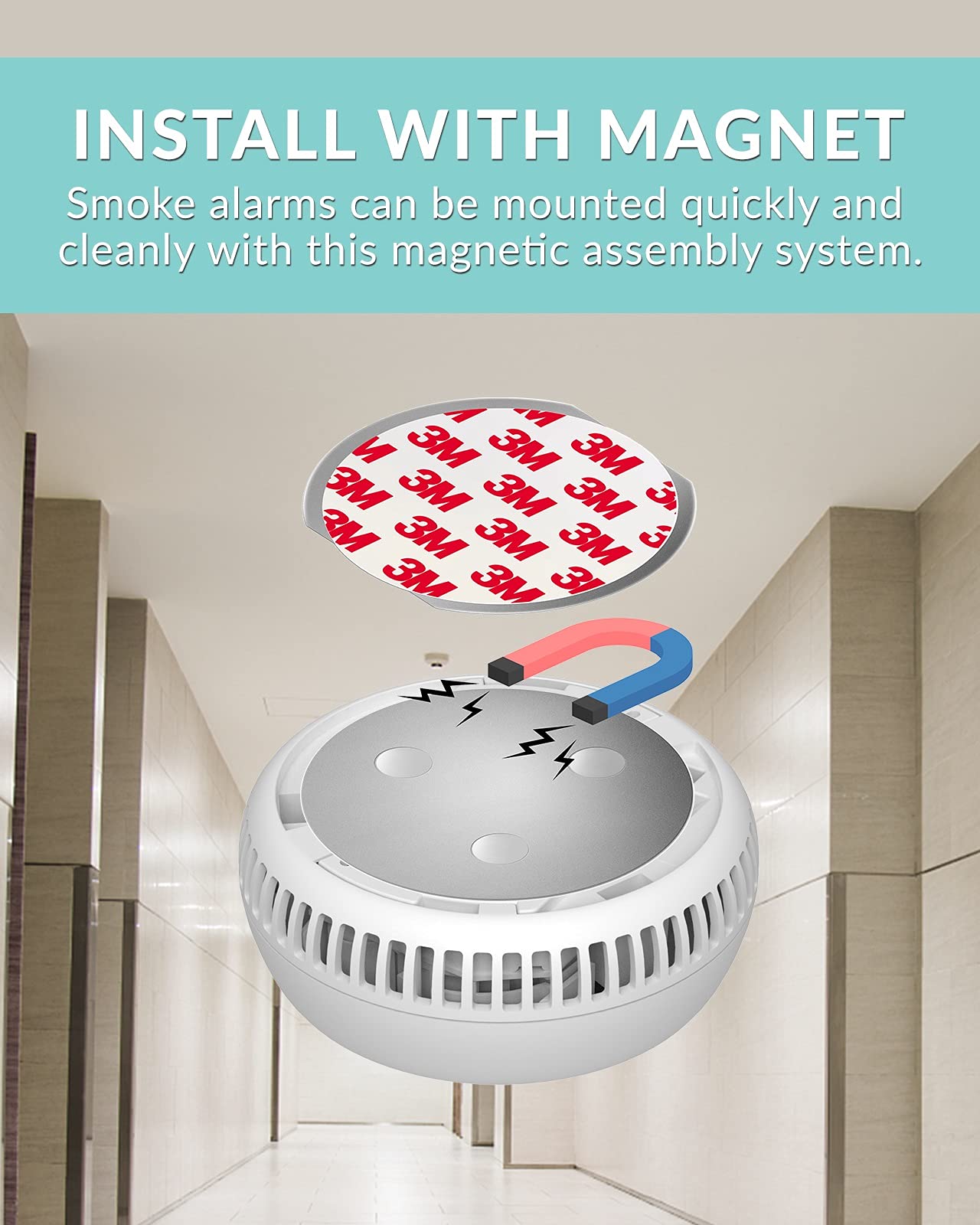 Easy Installation: Smoke alarm can be easily installed with mounting bracket. Not hardwired anymore and you can install it wherever you want, except bathroom and kitchen, keep 3 ft away from the kitchen, bathroom, or other high air flow areas
