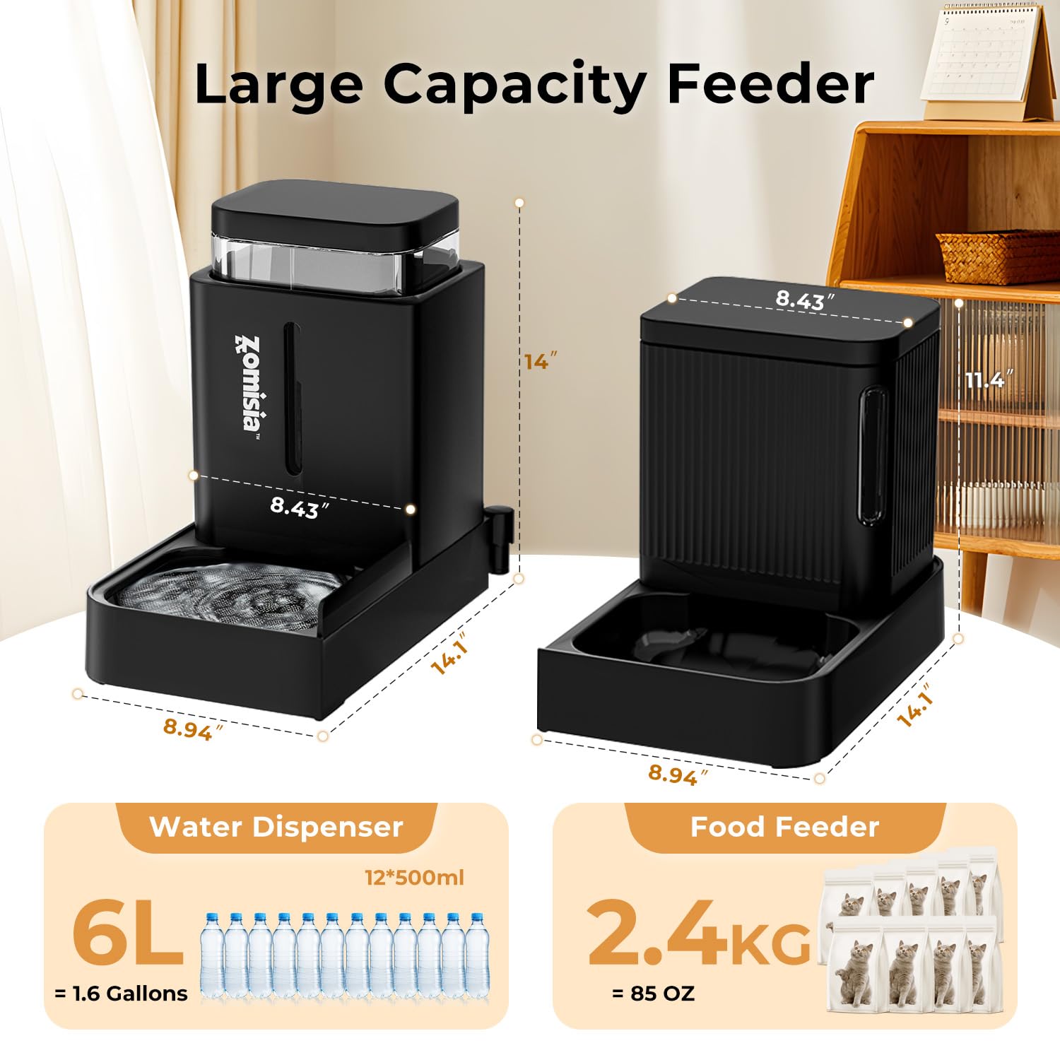 Extra Large Capacity: Large capacity of 1.6 gallons, can last about 10 days for small pets and 5 days for big pets, perfect for busy pet owners. You can rest assured to go to work, party, or vacation, and don't worry that pets will be hungry.
