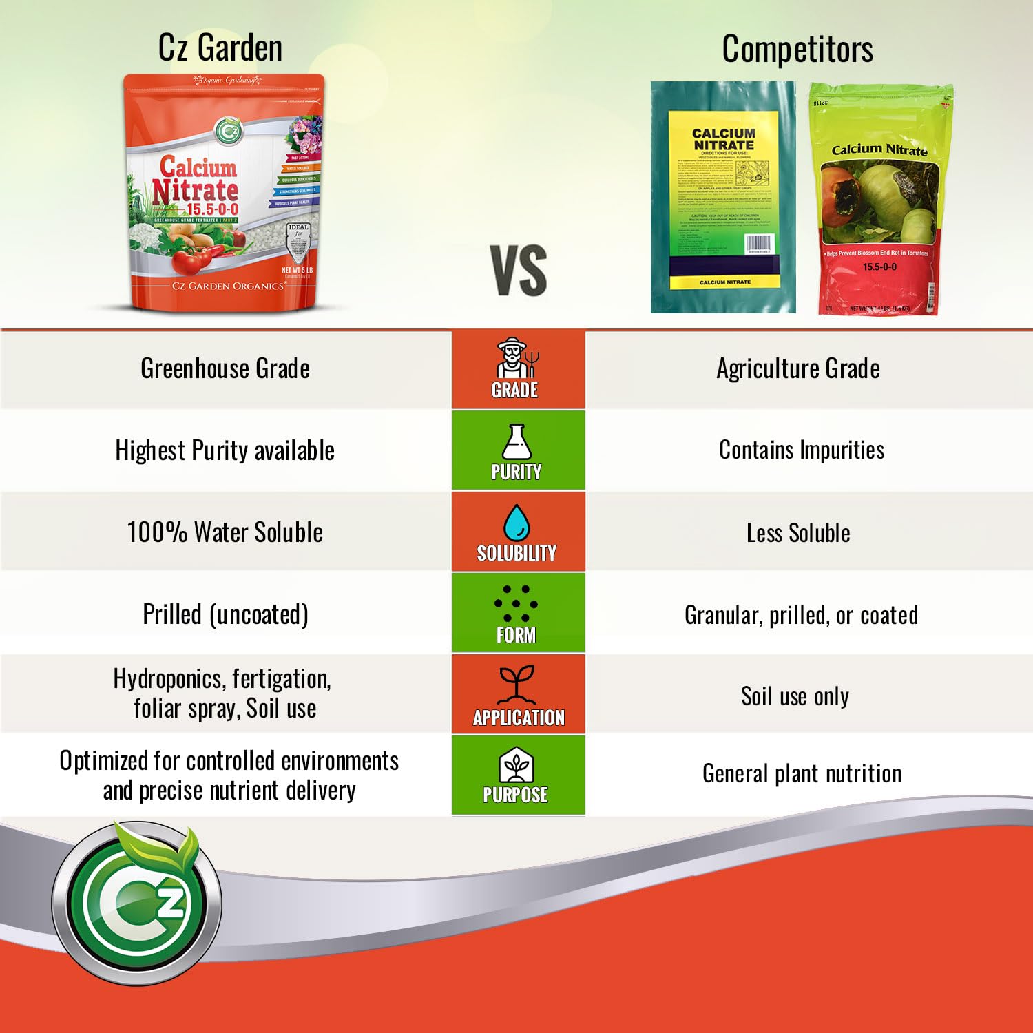 PREMIUM QUALITY INGREDIENTS – Cz Garden Calcium Nitrate 15.5-0-0 is a water soluble, high purity, premium Nitrogen + Calcium fertilizer designed to boost the healthy development of all your indoor flowers, lawn, and garden vegetables.