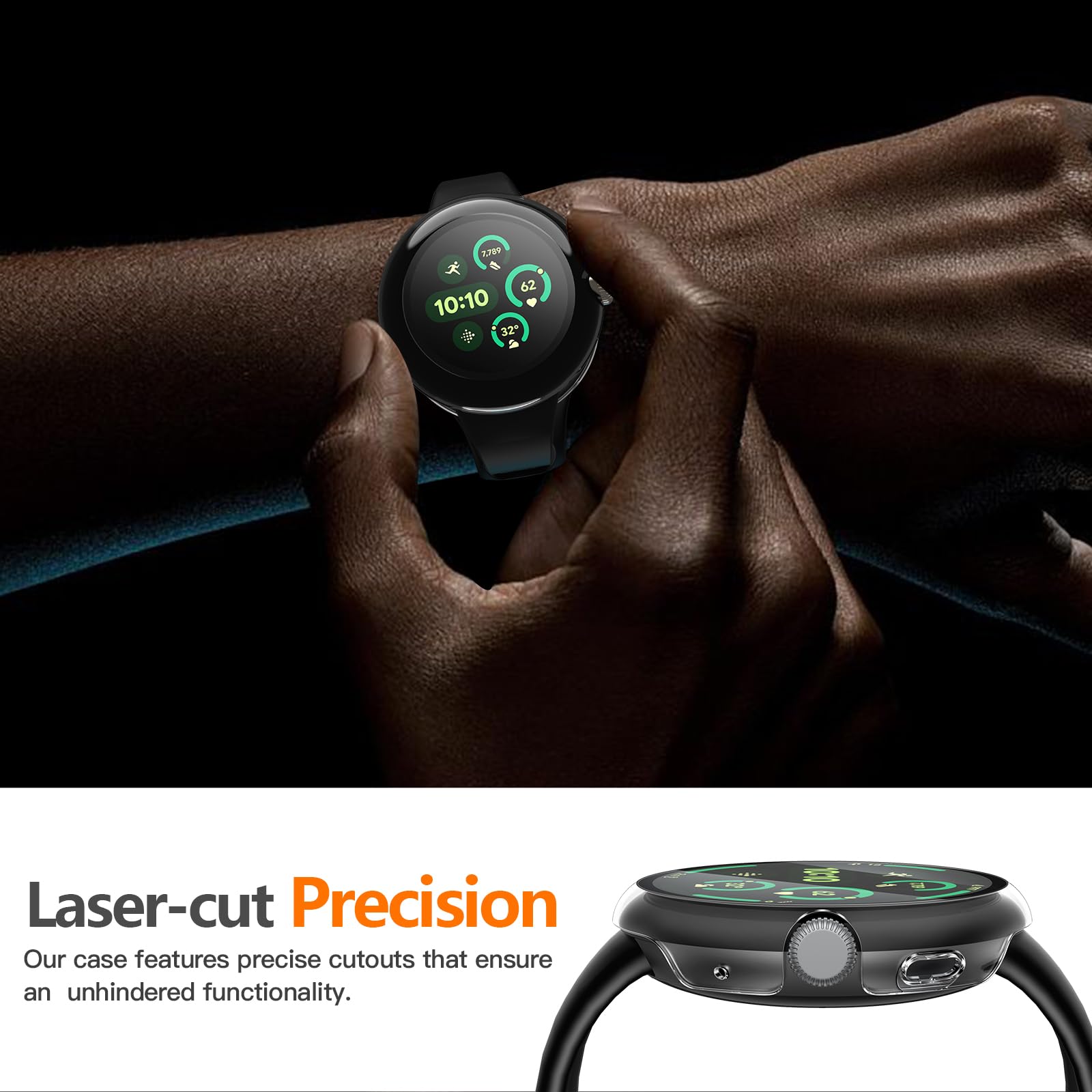 Full Protection: This comprehensive case combines a high quality hard PC frame with an ultra-thin tempered glass screen protector in a robust 2-in-1 design without adding any extra bulk or weight. It offers complete protection for your Google watch’s screen and curved edges, guarding against dust and fingerprints.