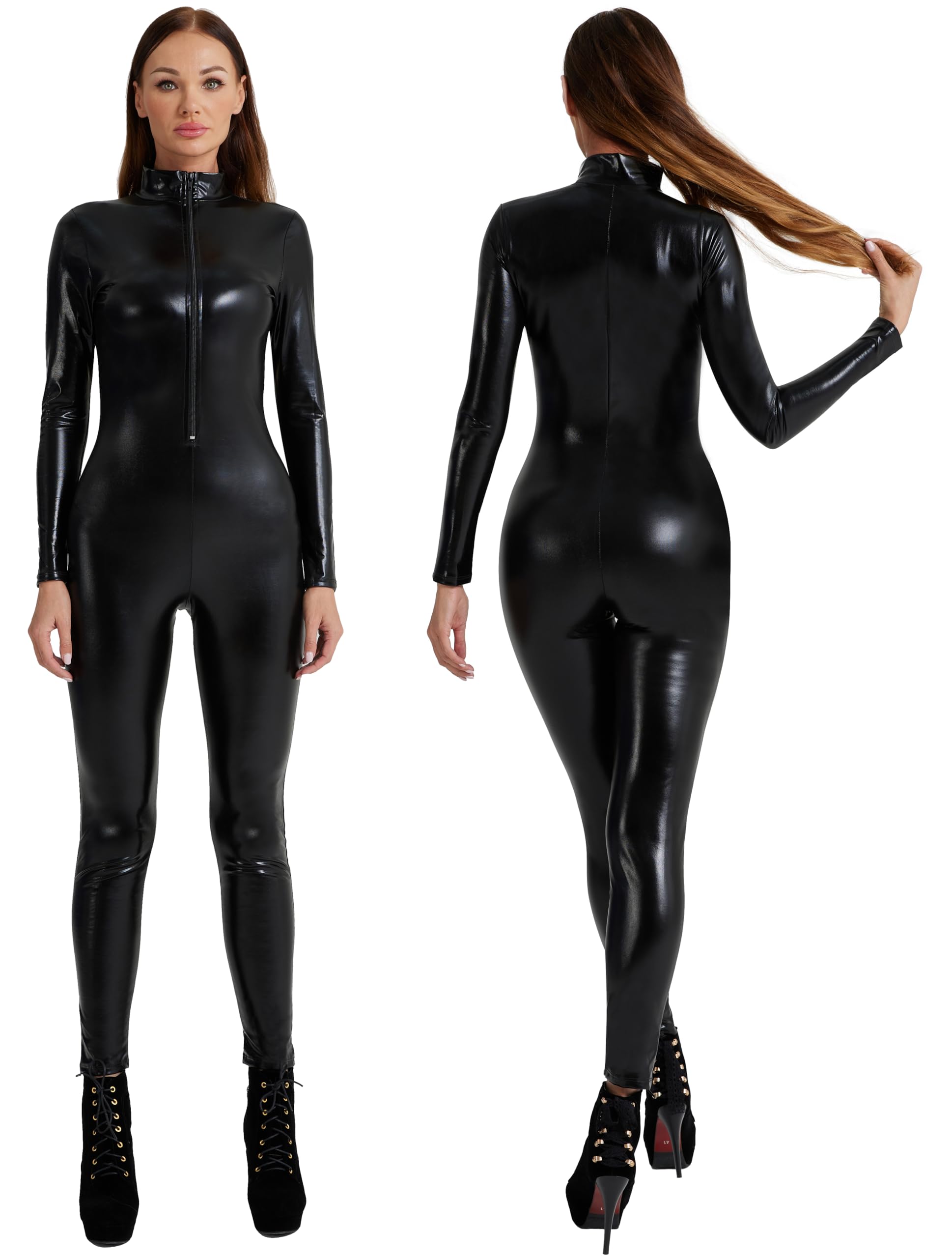 Versatile Style - Ideal for Halloween costumes, dance shows, stage performances, festival wear, cosplay events, and themed parties - this eye-catching metallic bodysuit adds drama to any occasion