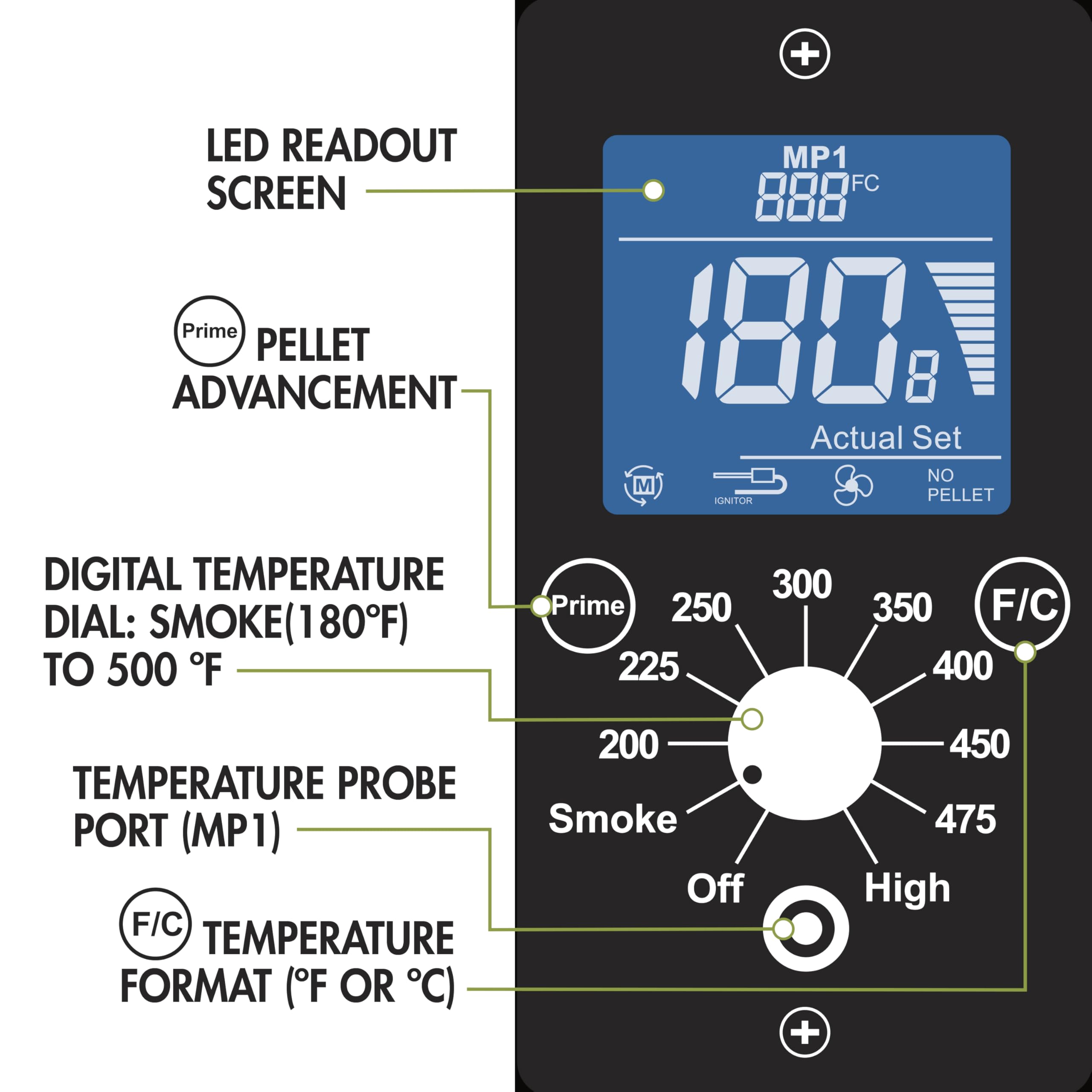 ADVANCED WOOD-FIRED TECHNOLOGY: Achieve the perfect wood-smoked flavor every time with a temperature range of 180°F to 500°F. The digital controller automatically regulates the cooking temperature, while the included food probe ensures perfectly cooked meat every time.