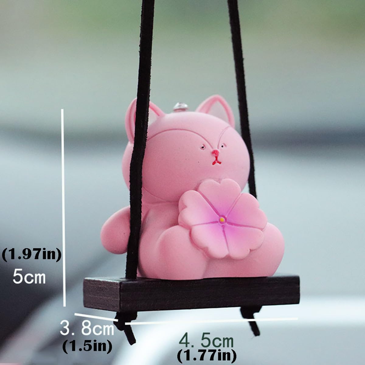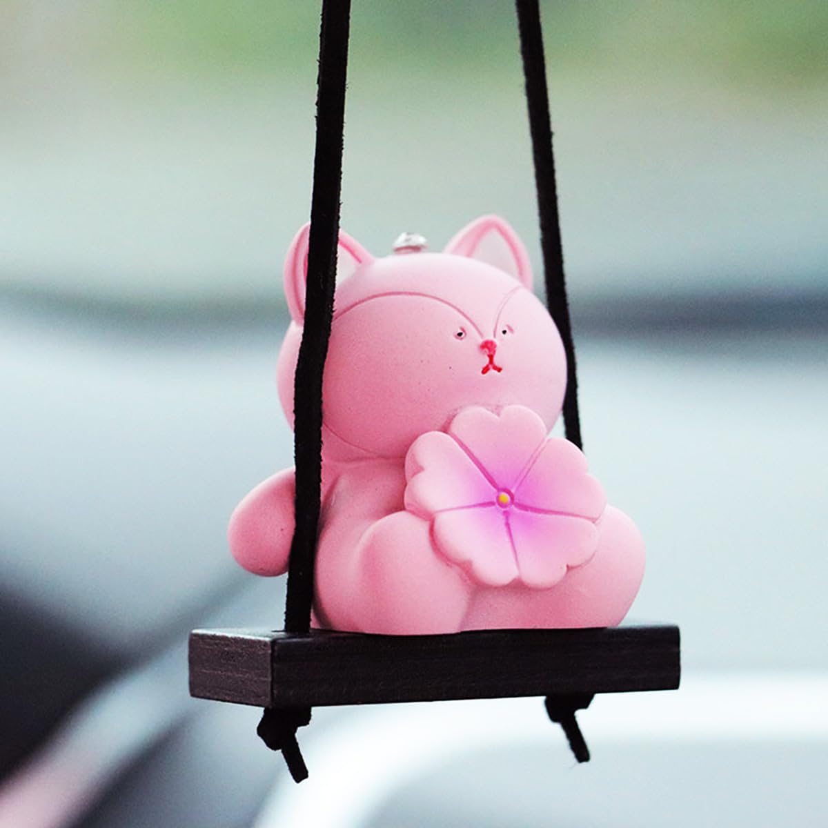 ADORABLE DESIGN: This cute resin swinging car hanging ornament features cartoon animals holding flowers in a charming hanging pendant perfect for decorating your car interior.
